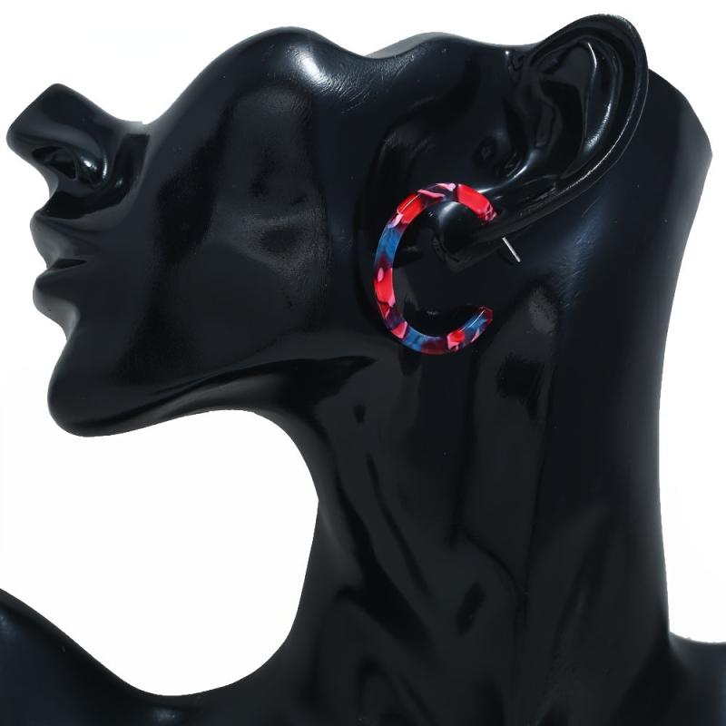 These trendy C-shaped hoop earrings feature a boho leopard print design. Made from versatile acrylic and acetate, they are perfect for accessorizing casual attire or as a thoughtful gift.