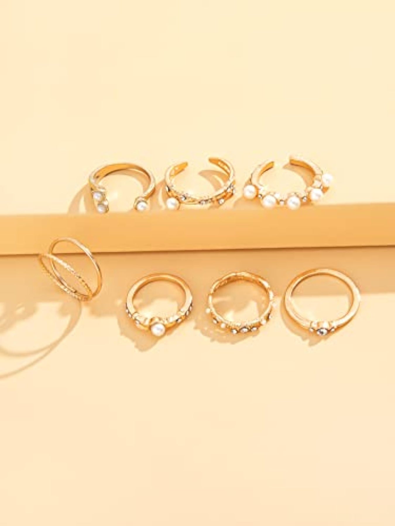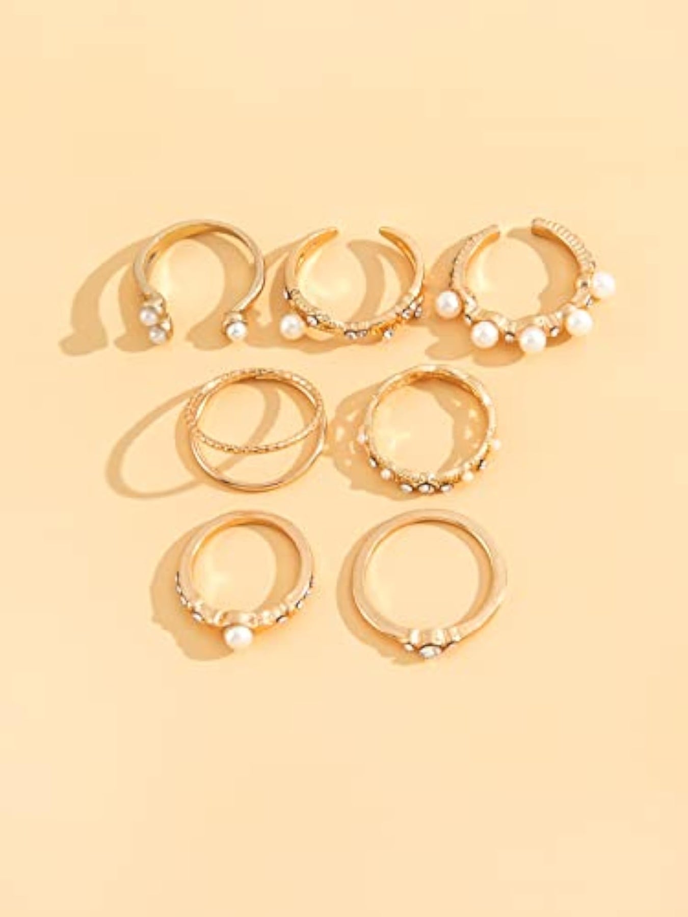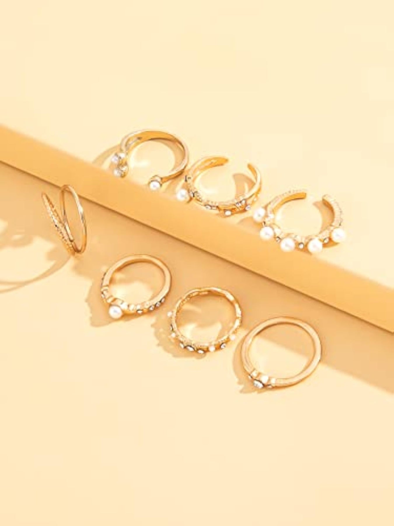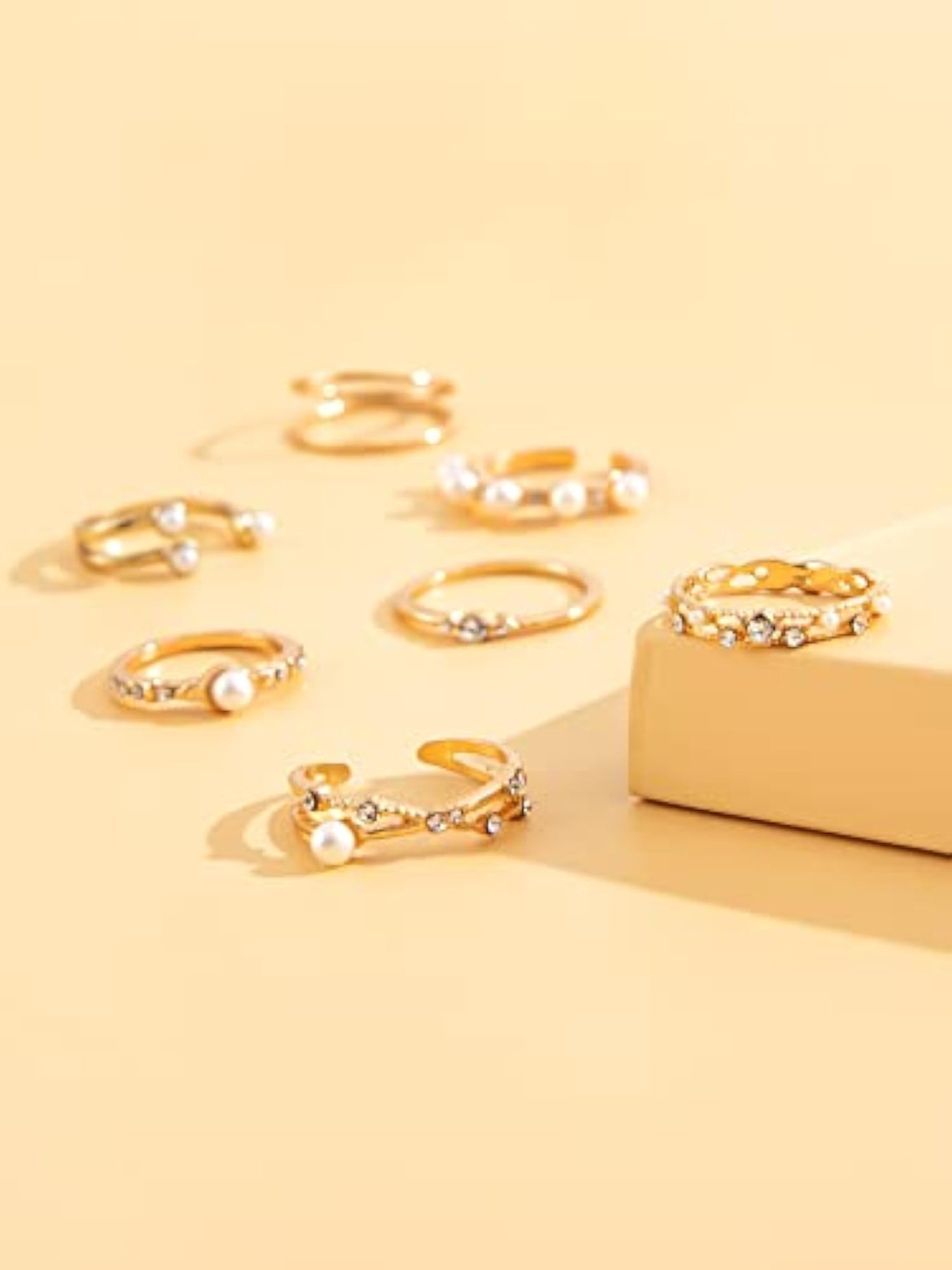 Enhance your bohemian style with this set of 7 metal midi rings crafted for a chic addition to your look.