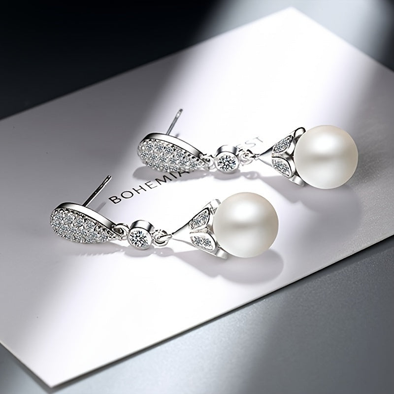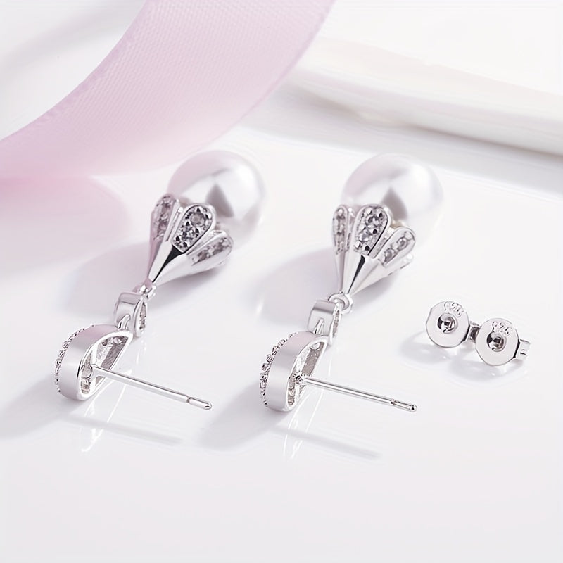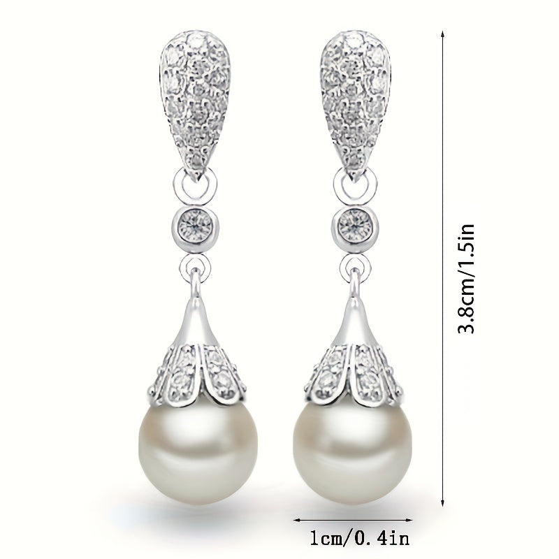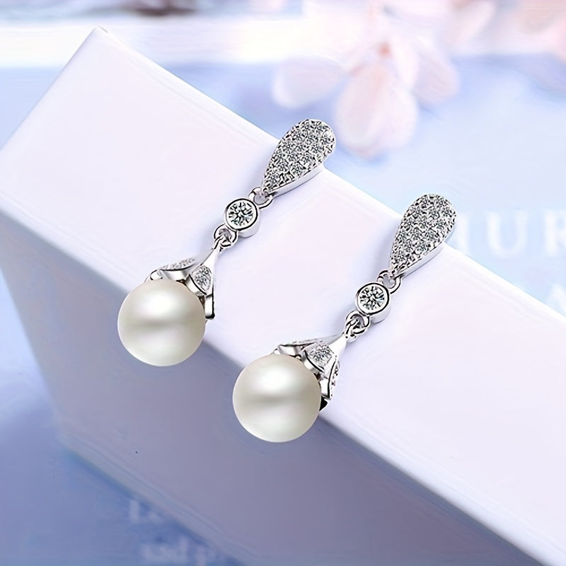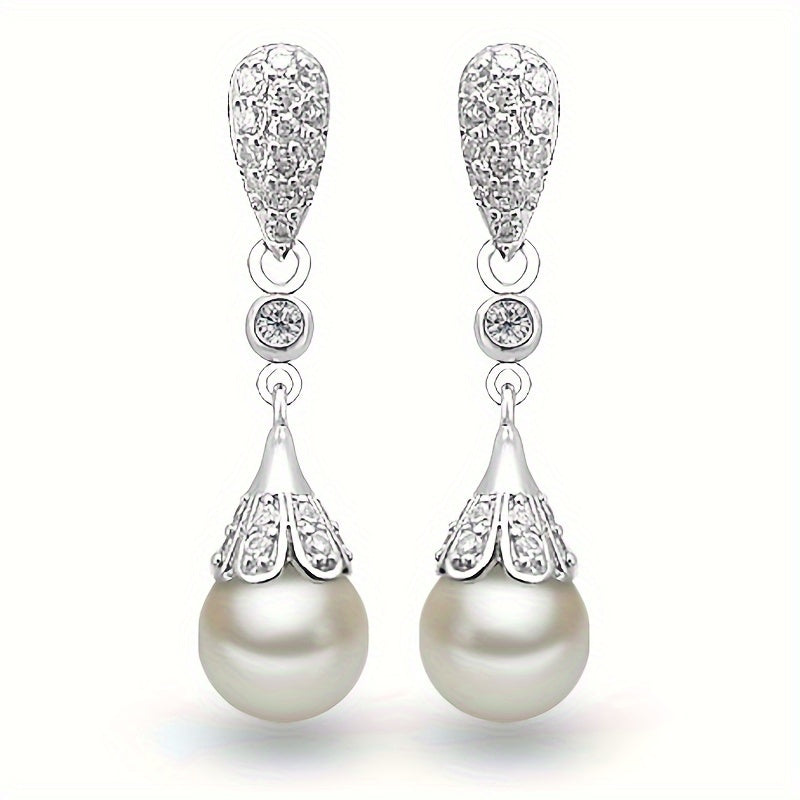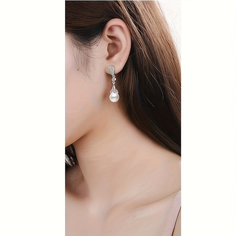 Elegant silvery hollow texture drop earring with faux pearl pendant, perfect for daily wear or wedding. Delicate and chic accessory that complements your style. Ideal birthday gift for a loved one.