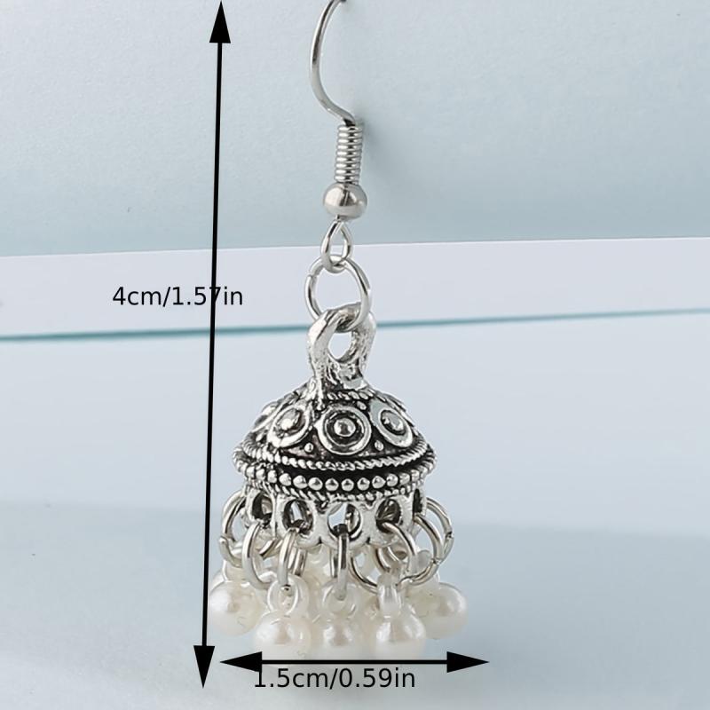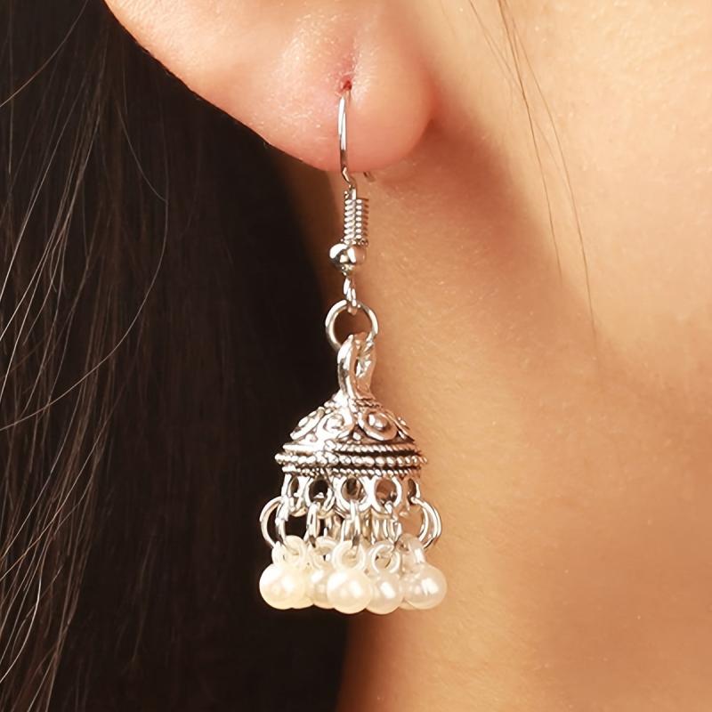 Vintage boho style earrings with silvery tassels and pearl accents, perfect for daily and vacation wear in all seasons.
