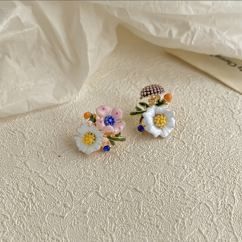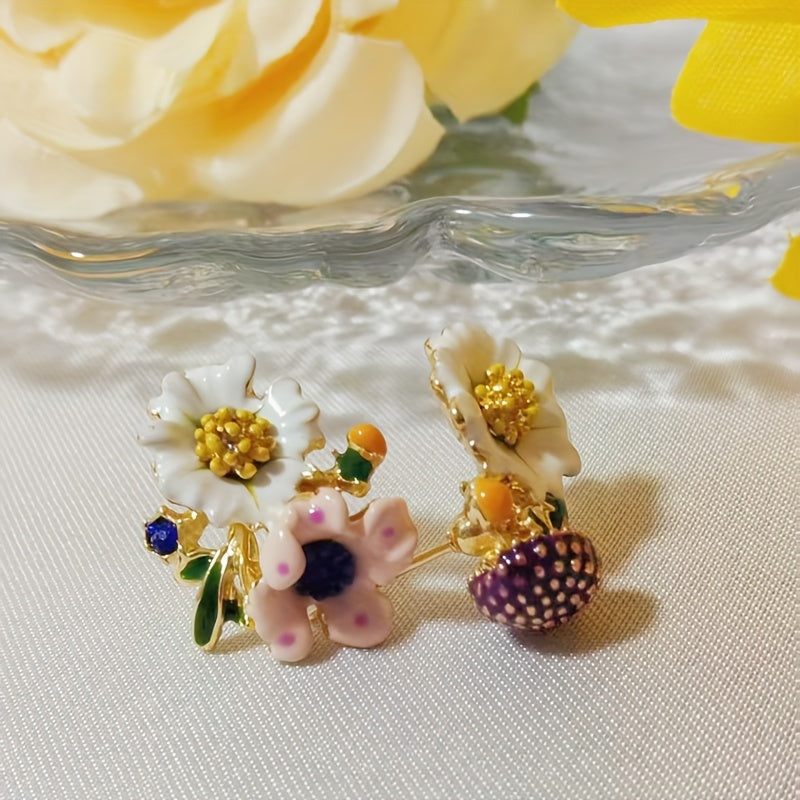 Vintage boho style earrings featuring colorful flowers and butterflies. Made with a mix of copper and 925 silver plating, these earrings are perfect for daily wear and ideal for parties and festivals.
