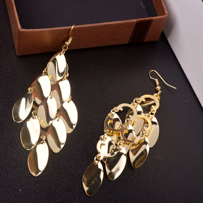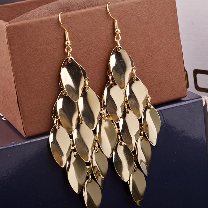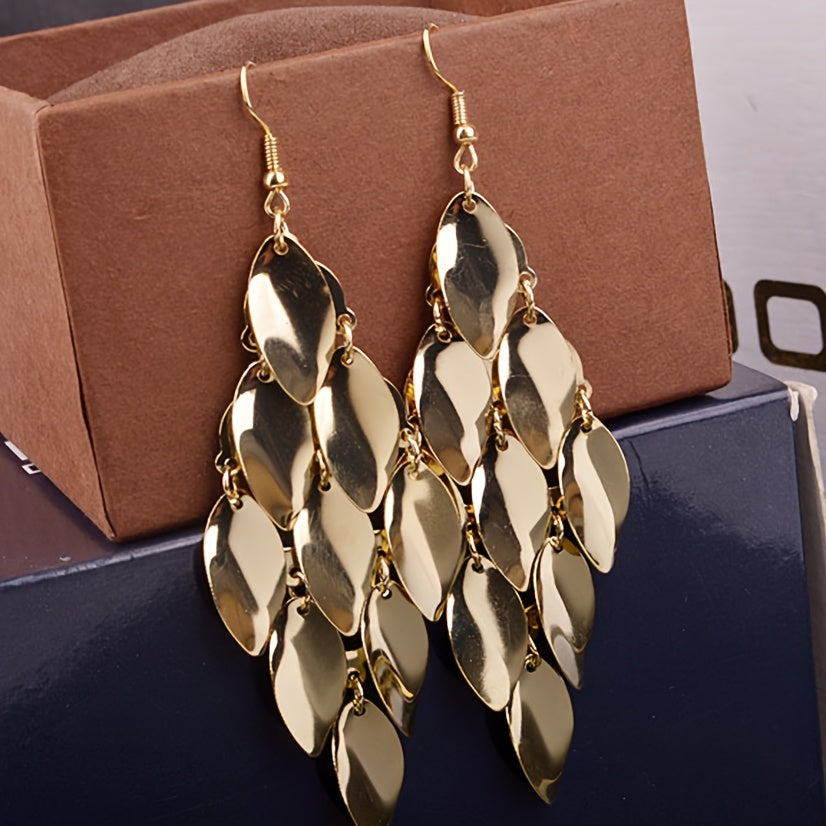 Boho Style Golden Leaf Dangle Earrings Metal Sparkling Texture