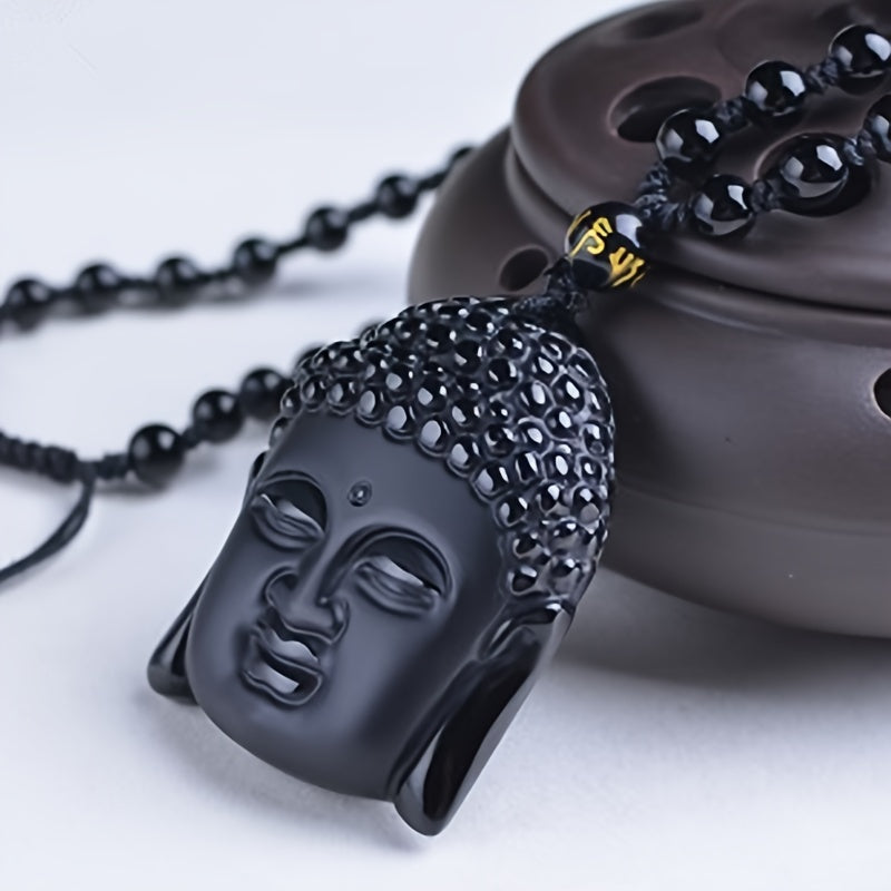 This bohemian style pendant necklace features a character head design in durable resin material with an adjustable bead chain. Suitable for both men and women.