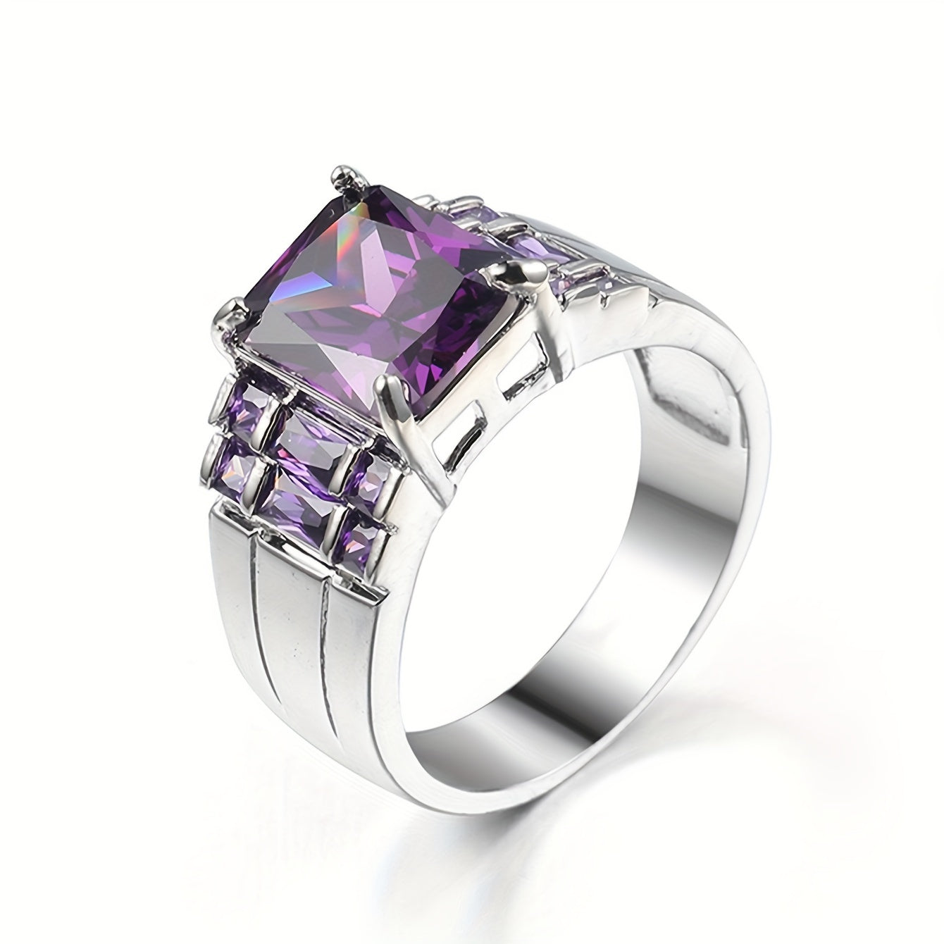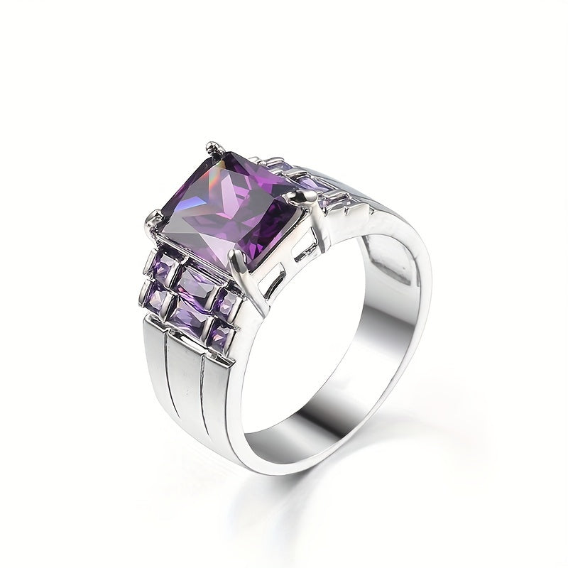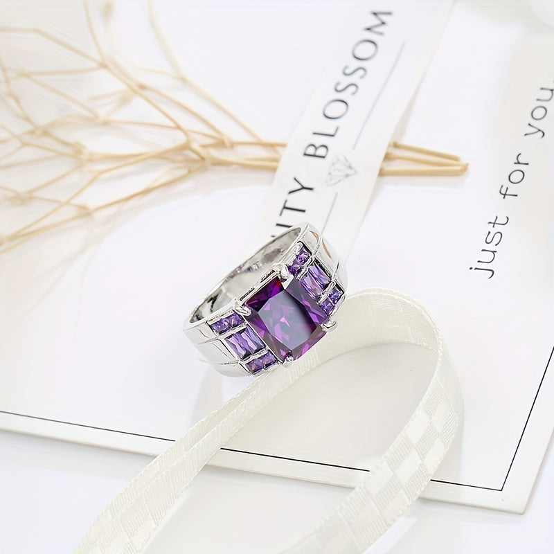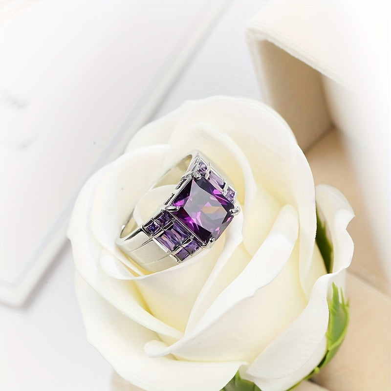 Boho Style Wide Band Purple Zirconia Ring Unisex Jewelry