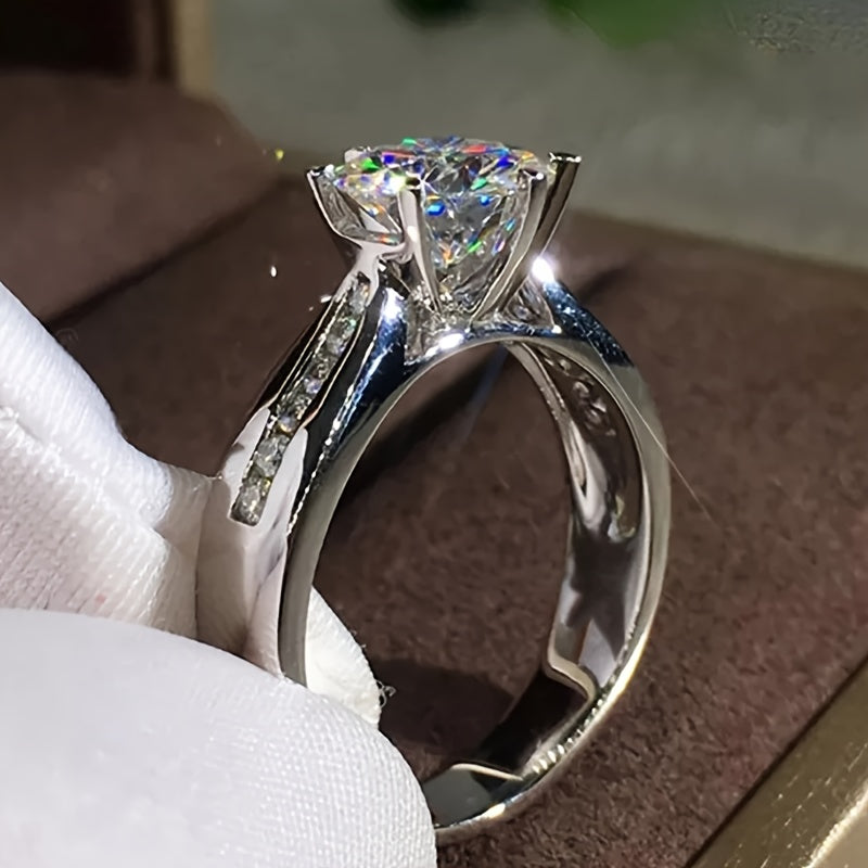 Elegantly designed bridal wedding ring featuring a sparkling cubic synthetic zirconia stone in a 6-prong setting. Perfect as an engagement ring or gift for your loved one.