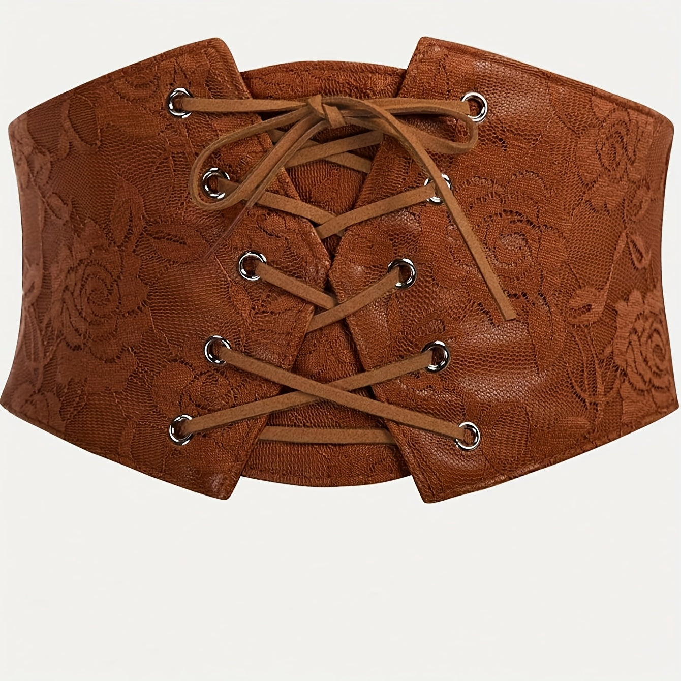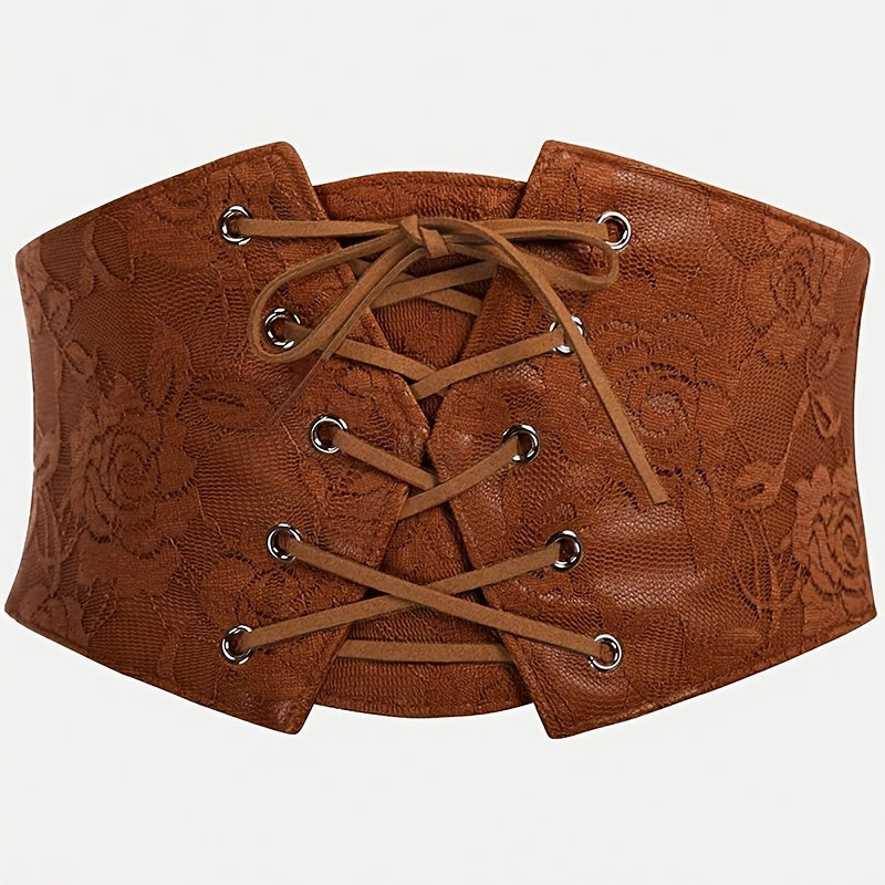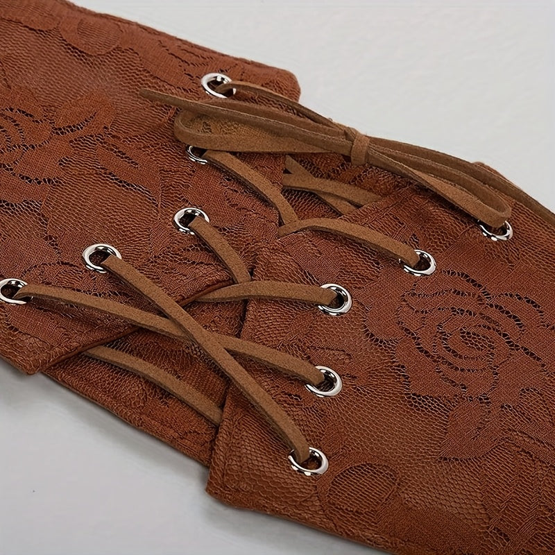 Enhance your outfit with this stylish and comfortable brown floral lace waist cincher. Perfect for casual gatherings or daily wear.