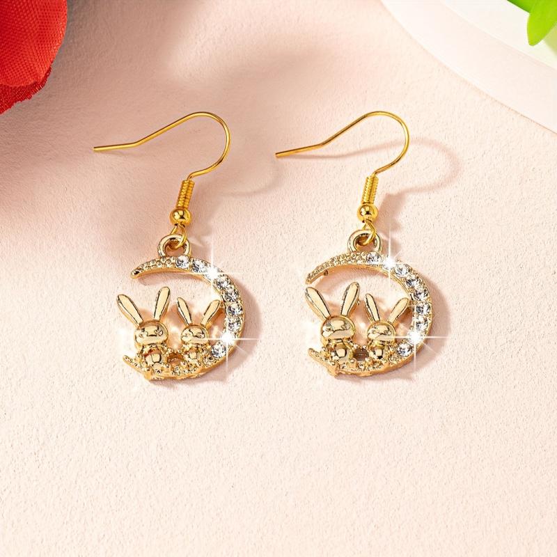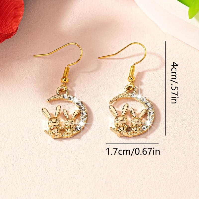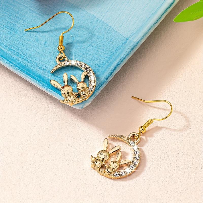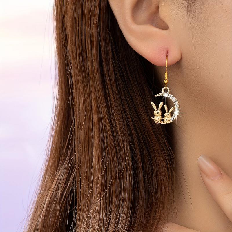 These 2pcs Bunny Moon glass inlaid earrings are a fun and sweet accessory for daily wear. The flash blingbling design adds personality and charm to any outfit. Perfect for dating or casual outings.