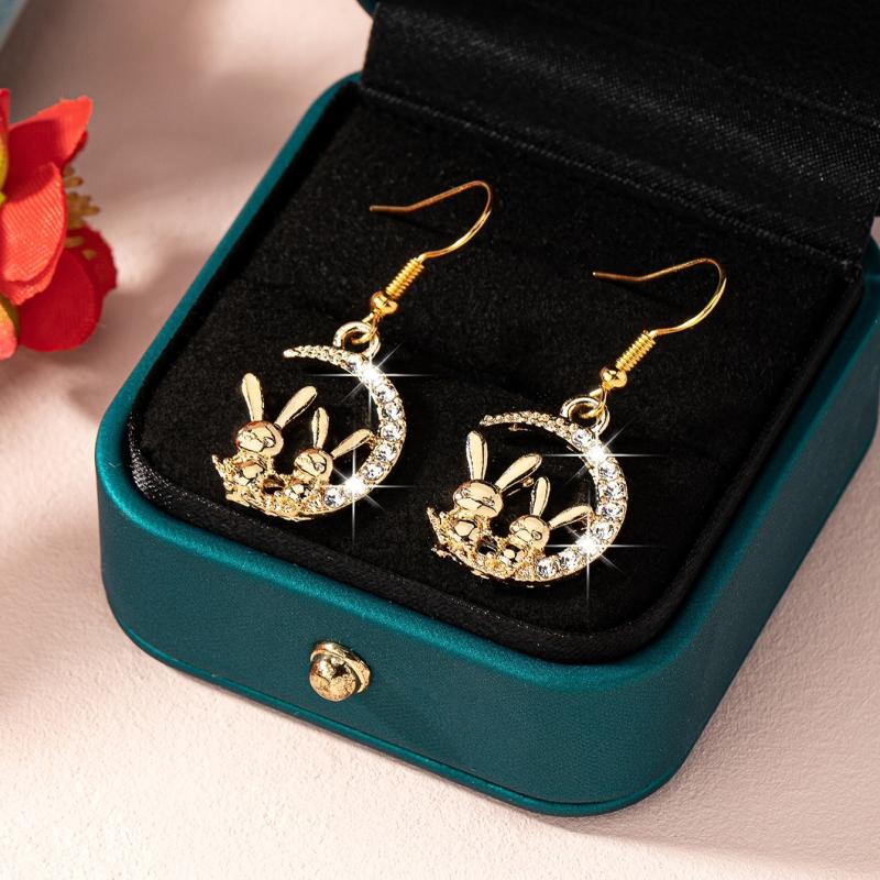 Bunny Moon Glass Inlaid Earrings Fun Blingbling Animal Sweet Daily Wear