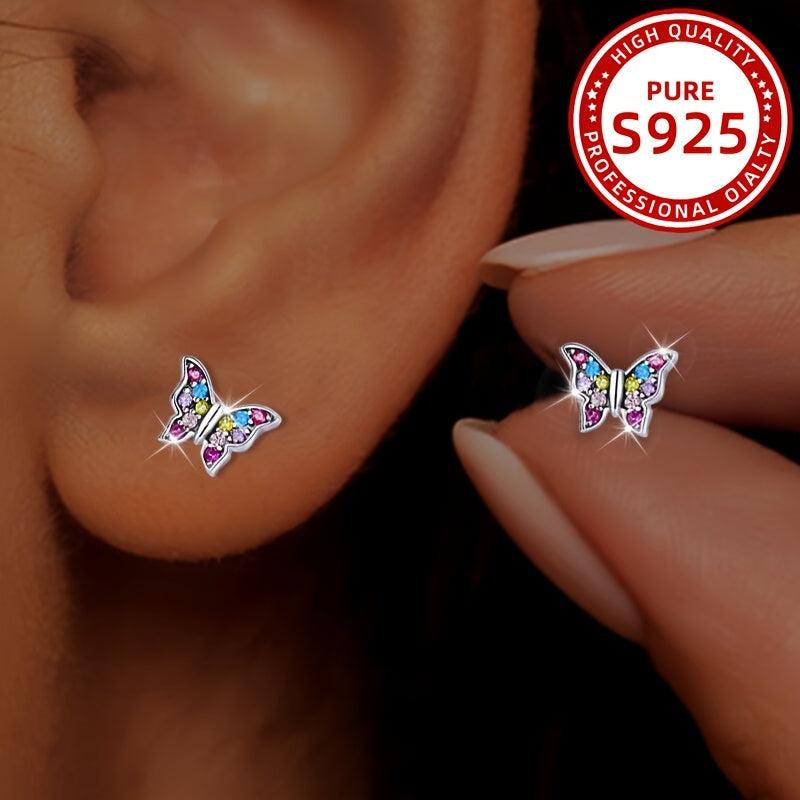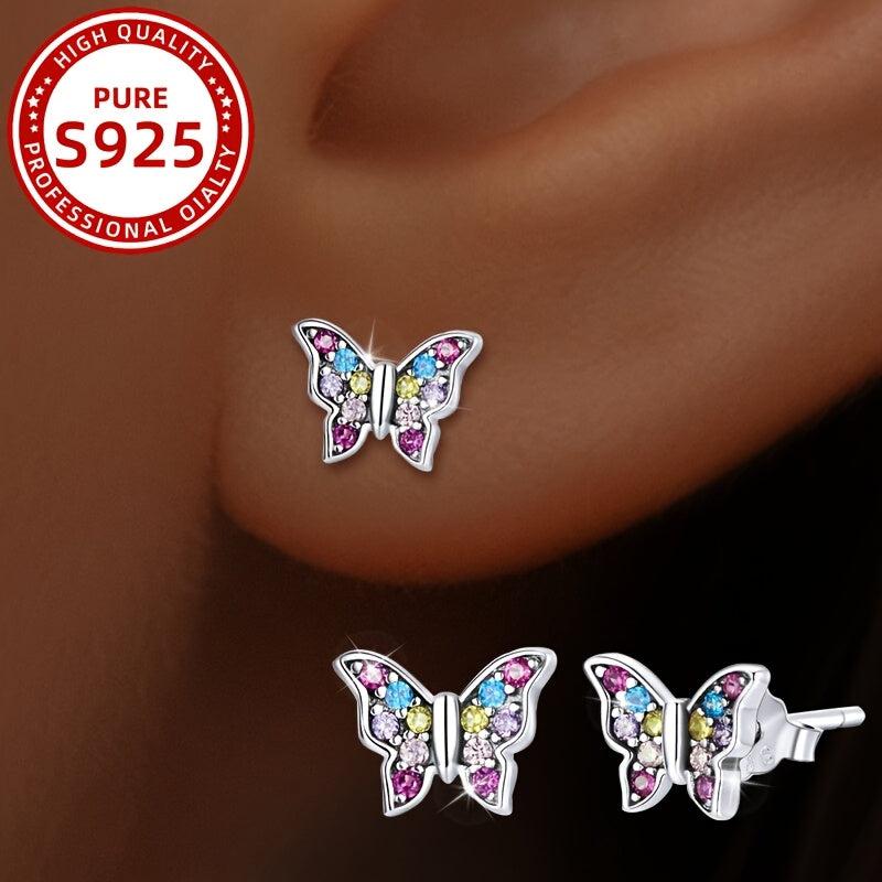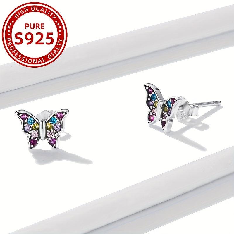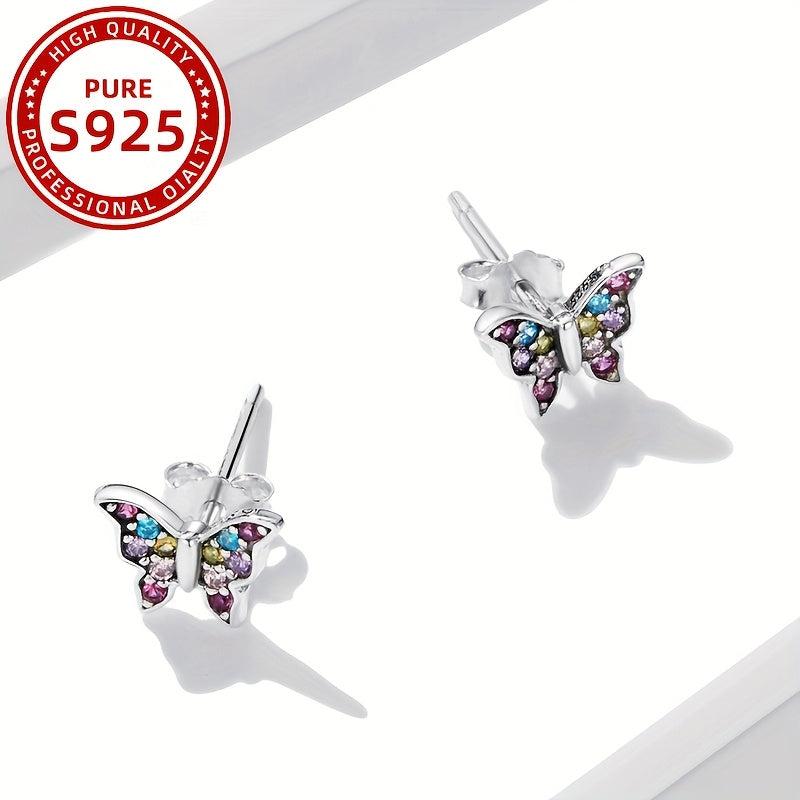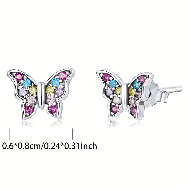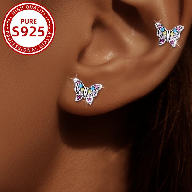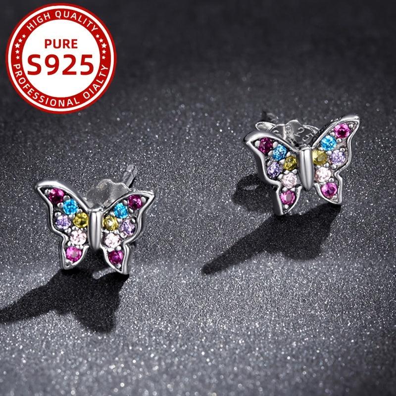 These women's earrings feature a butterfly design with synthetic zirconia inlay, made of 925 silver. Perfect for daily wear, holiday celebrations, and parties.