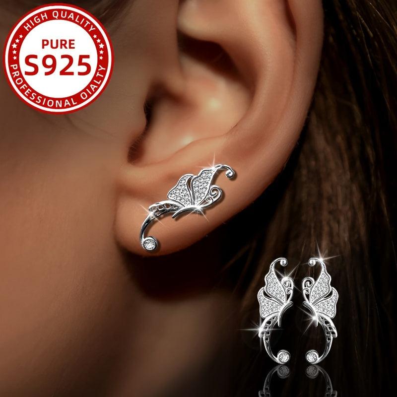 Enhance your style with these beautiful full ear earrings featuring butterfly micro inlay design. Made from 925 silver and synthetic zirconia, these earrings are perfect for adding a touch of elegance to your look.