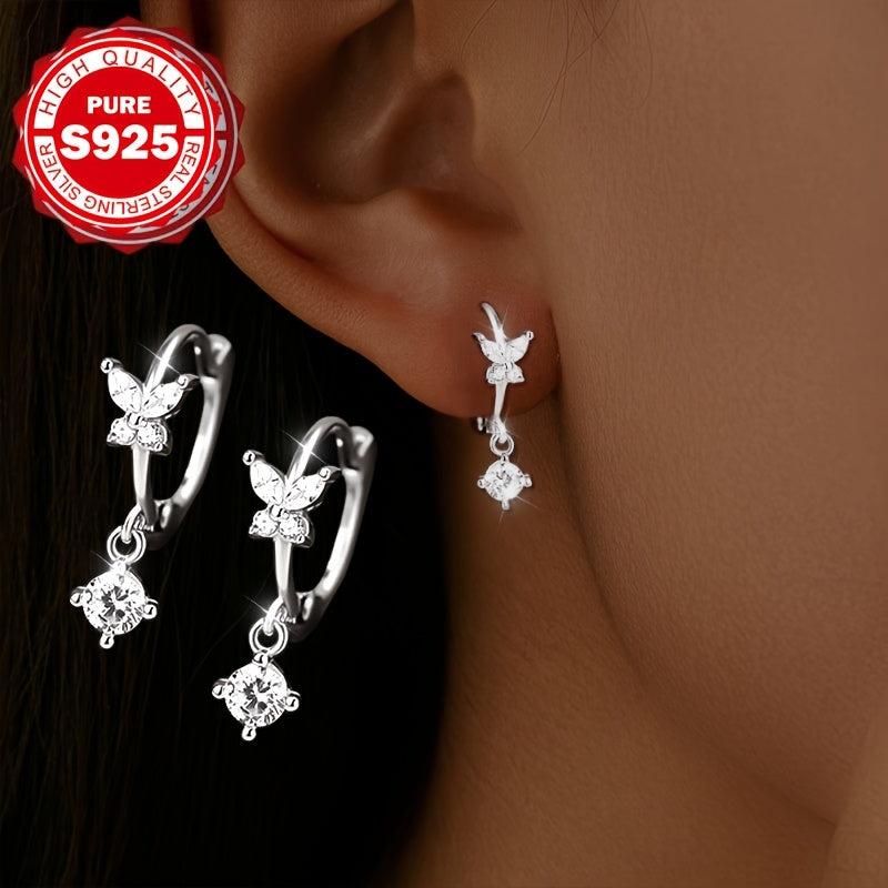 Butterfly Zirconia Earrings S925 Sterling Silver Lightweight