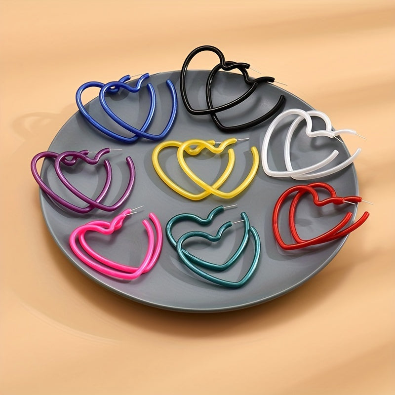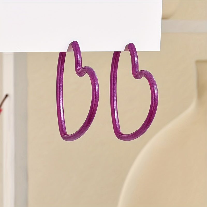 Adorable candy heart shape hoop earrings in retro style made of plastic. Perfect gift for daily casual wear.