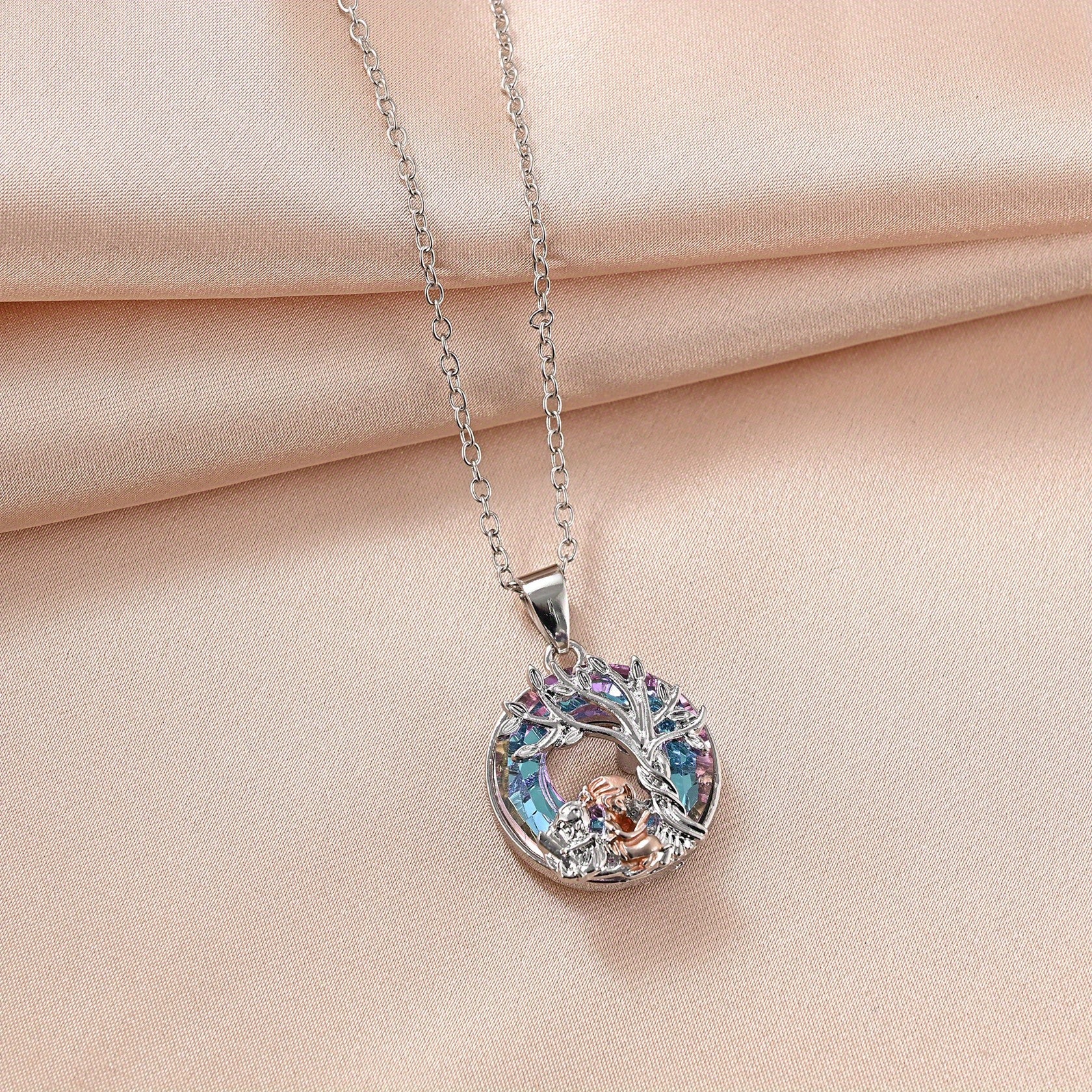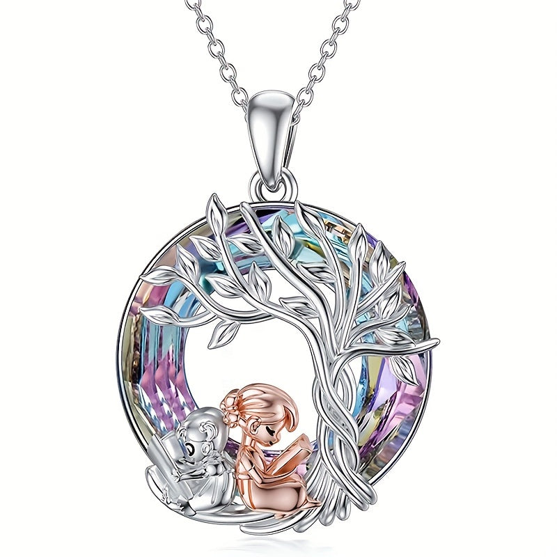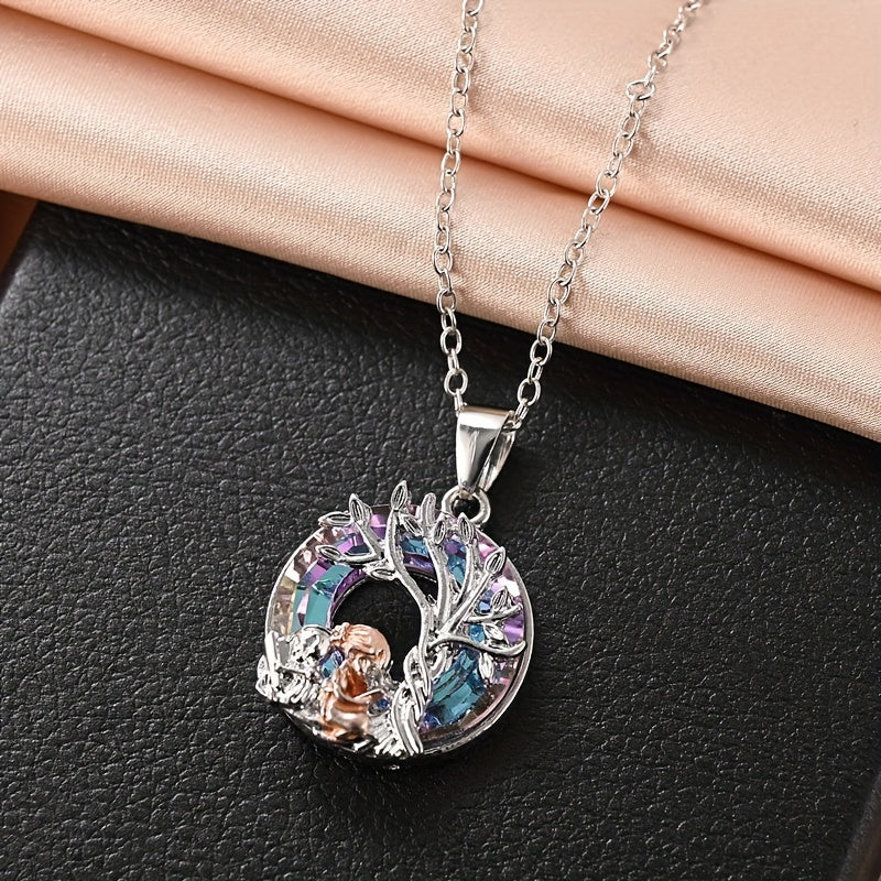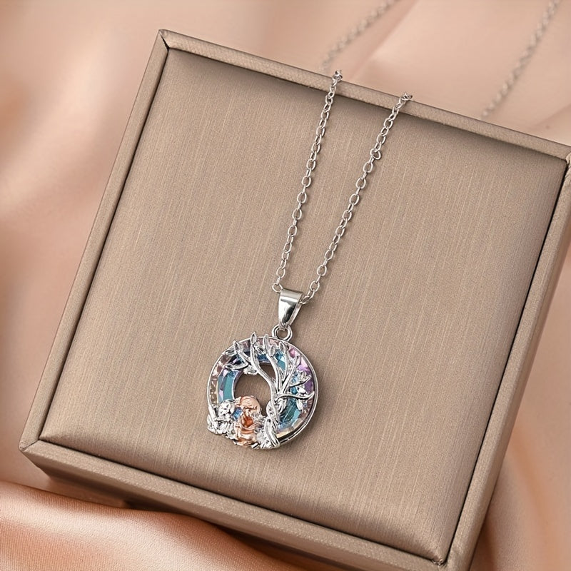 Elegant and stylish necklace featuring a round crystal pendant with cat and branch design. Perfect for male jewelry lovers.