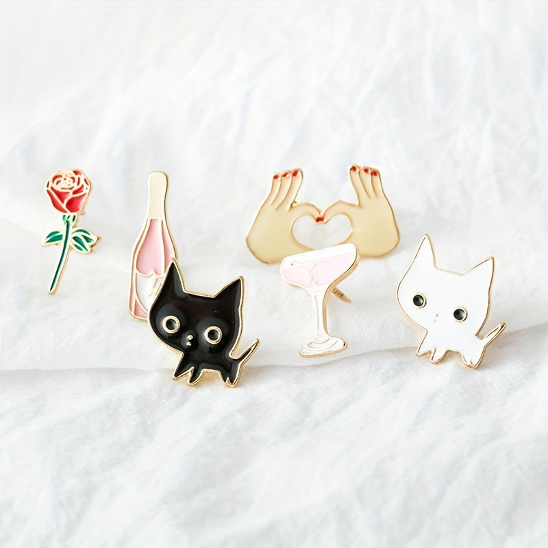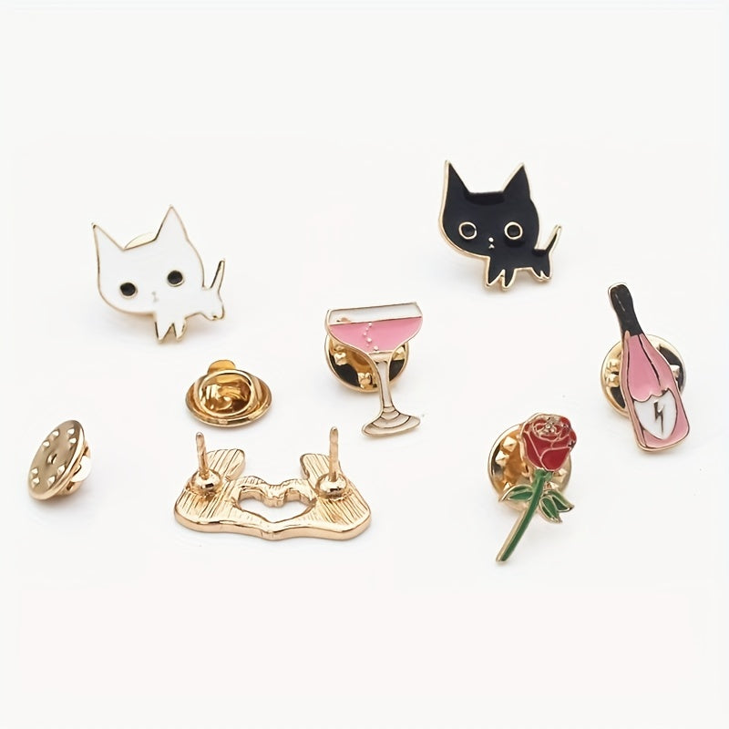 Add a touch of feline charm to your outfit with this cat brooch that features a wine bottle and glass design. This versatile accessory can be worn on clothing and adds a unique flair to your style.