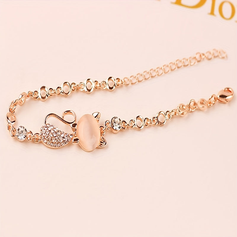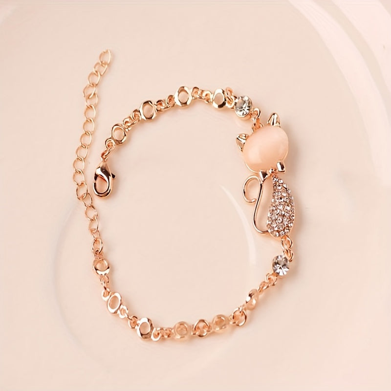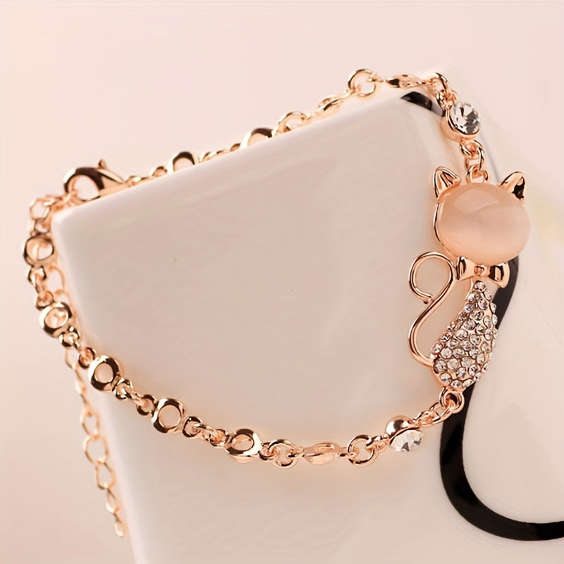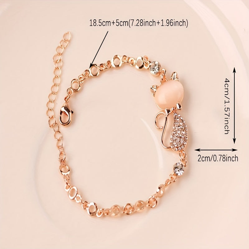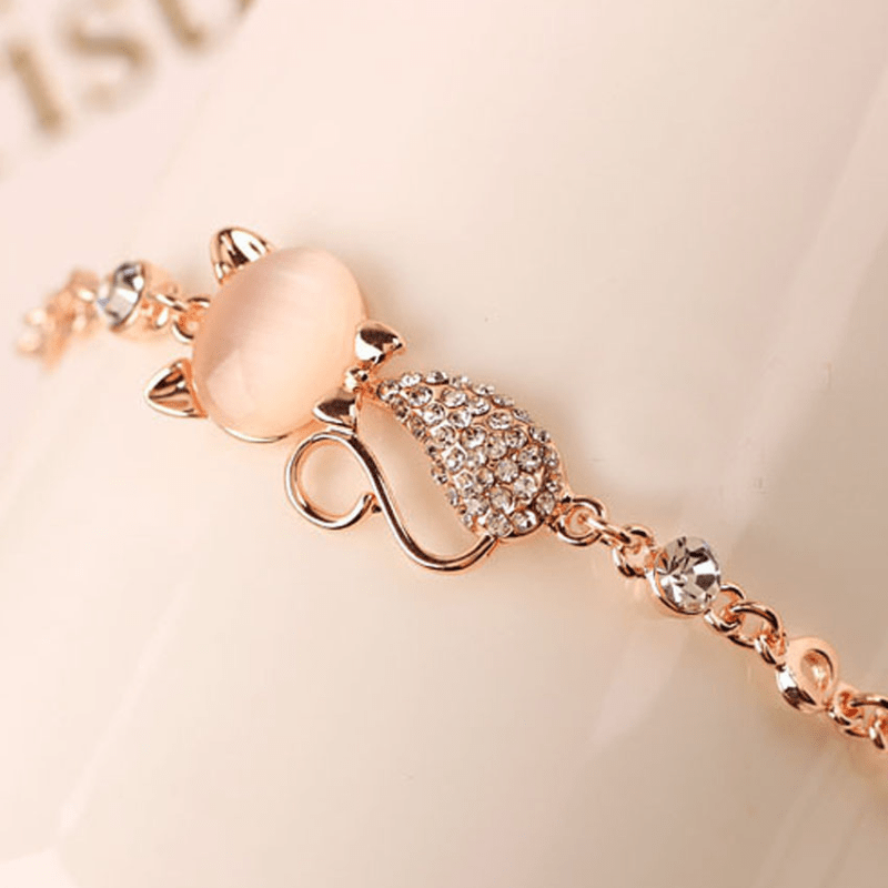 This stylish bracelet features a cat chain design, making it a perfect gift for your girlfriend or any cat lover. The sleek and unique design adds a touch of sophistication to any outfit.