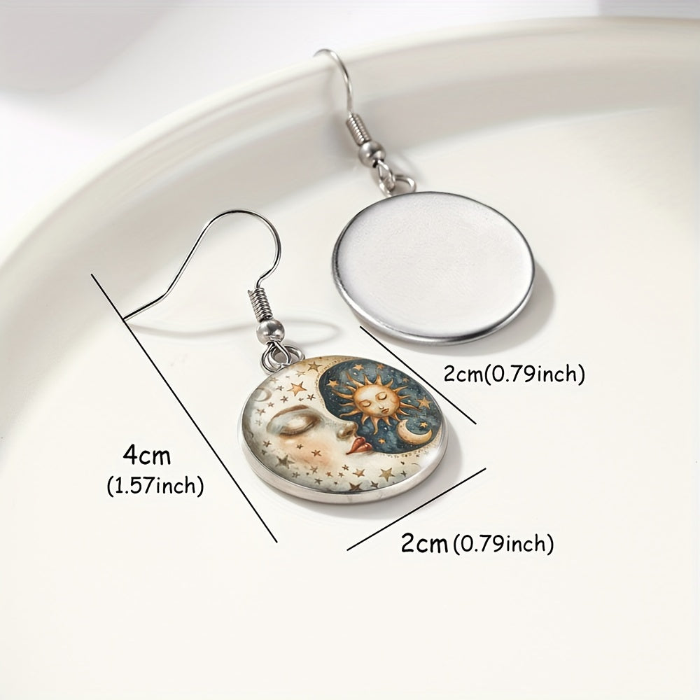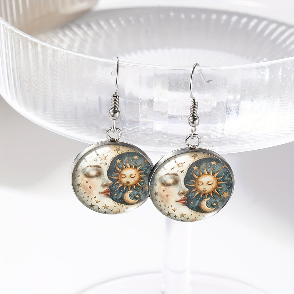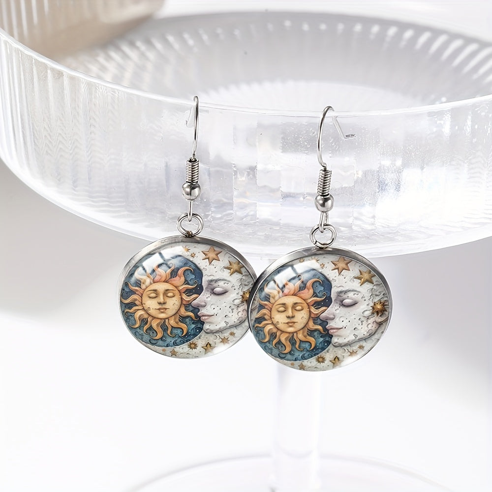 Embrace the celestial beauty with these stunning sun and moon glass dangle earrings. Perfect for those who love astronomy and unique jewelry.
