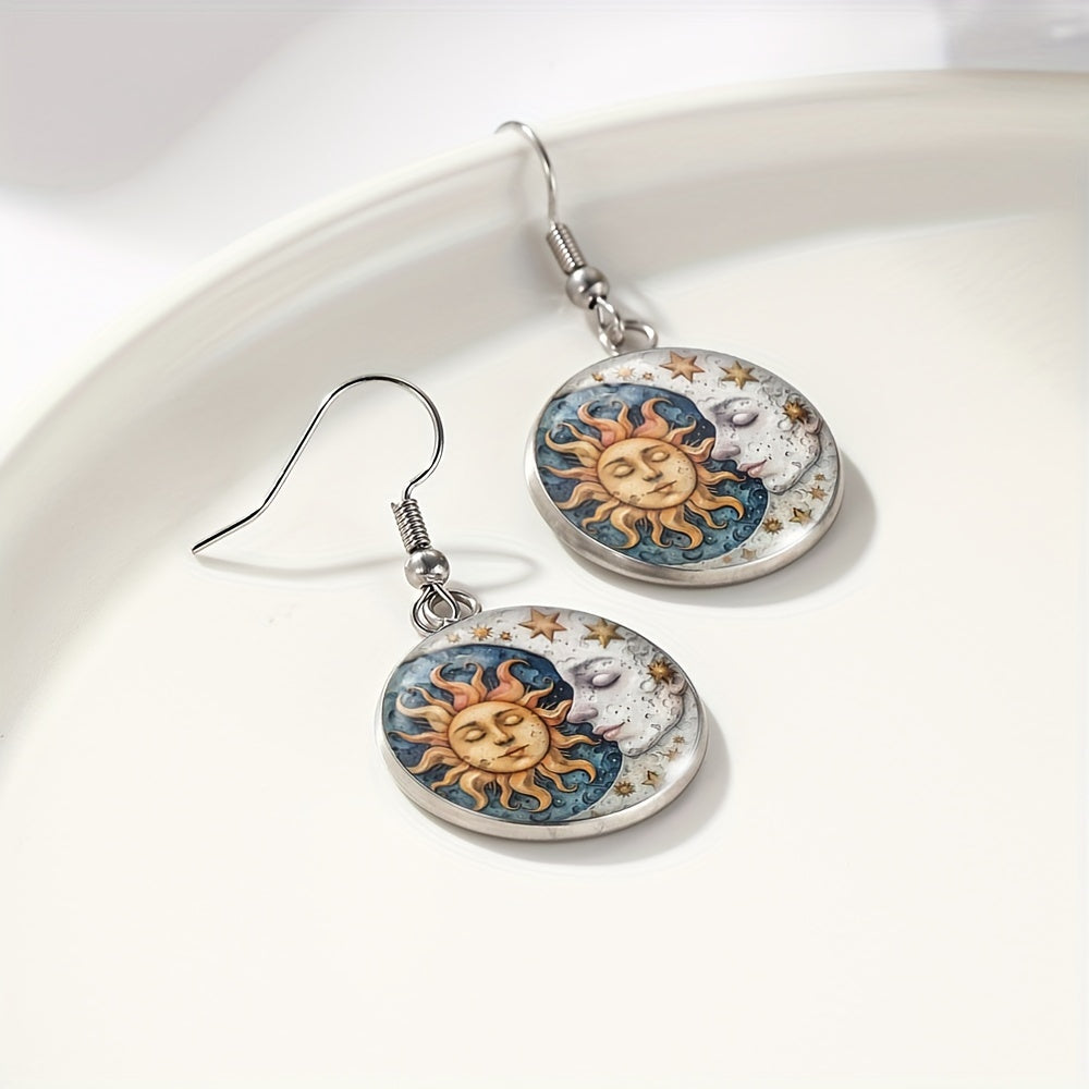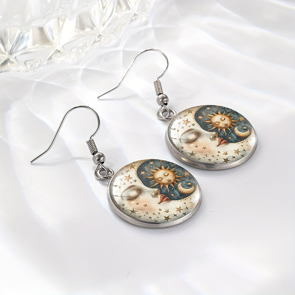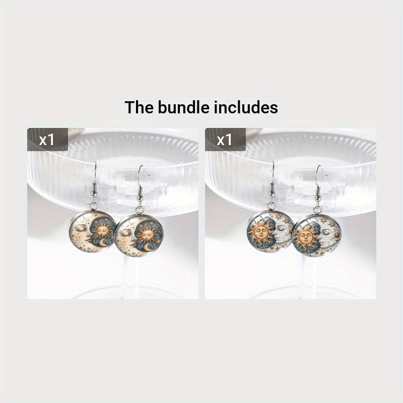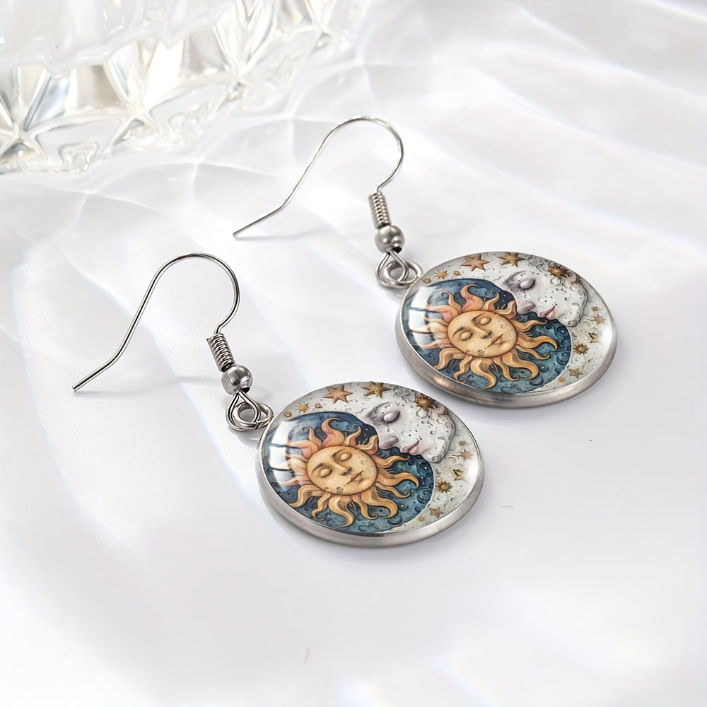 Embrace the celestial beauty with these stunning sun and moon glass dangle earrings. Perfect for those who love astronomy and unique jewelry.