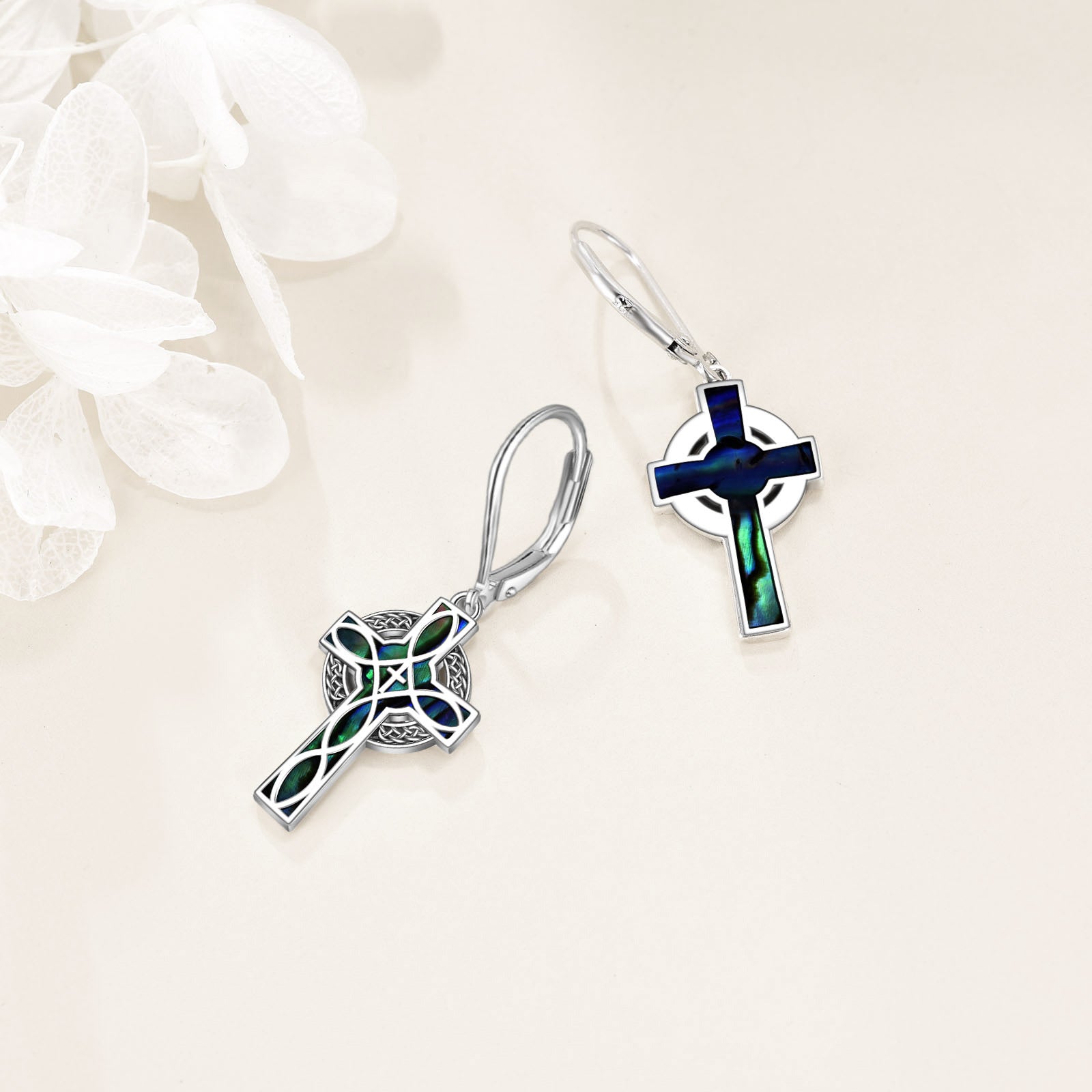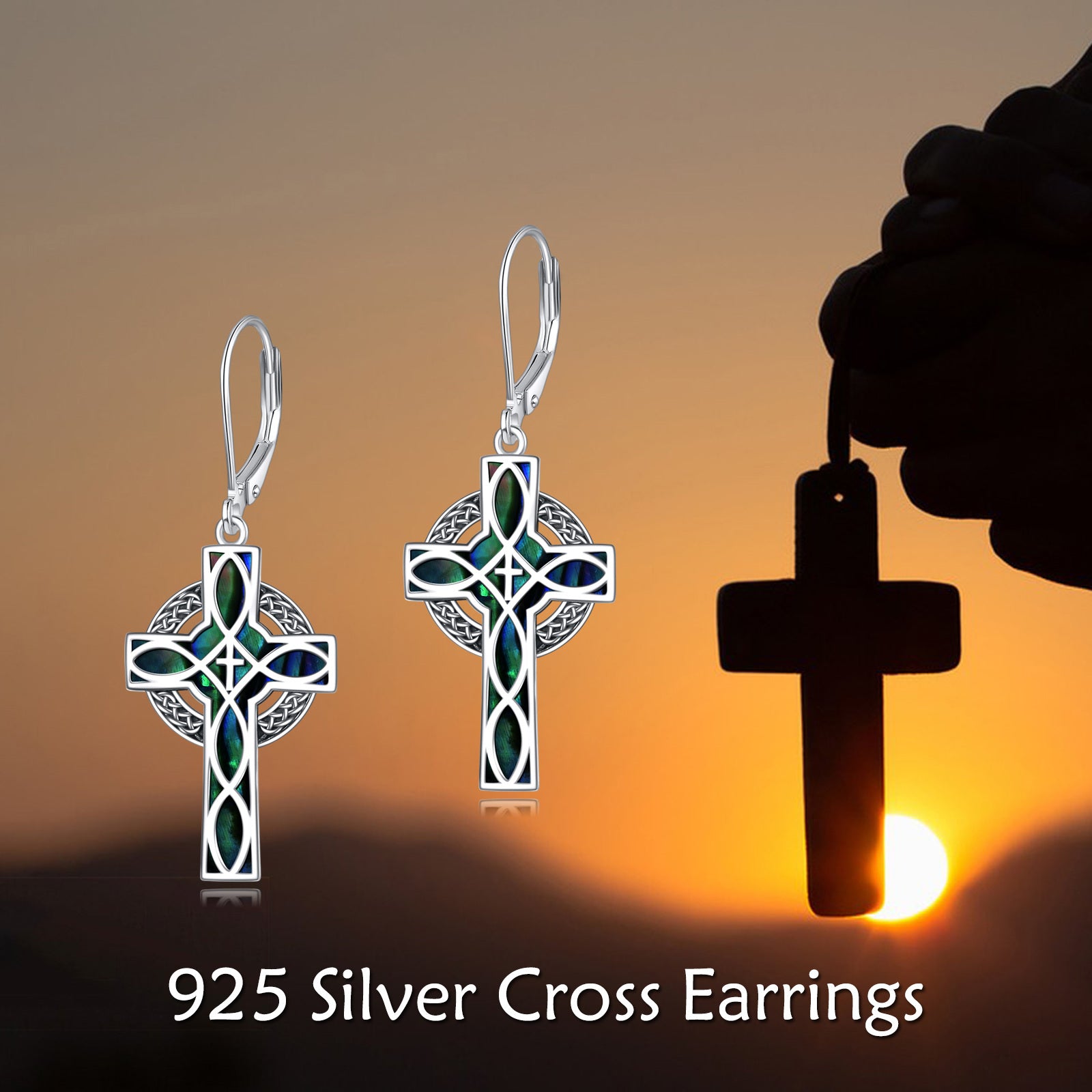 Celtic Cross Earrings Sterling Silver Dangle Drop Leverback Cross Earrings
