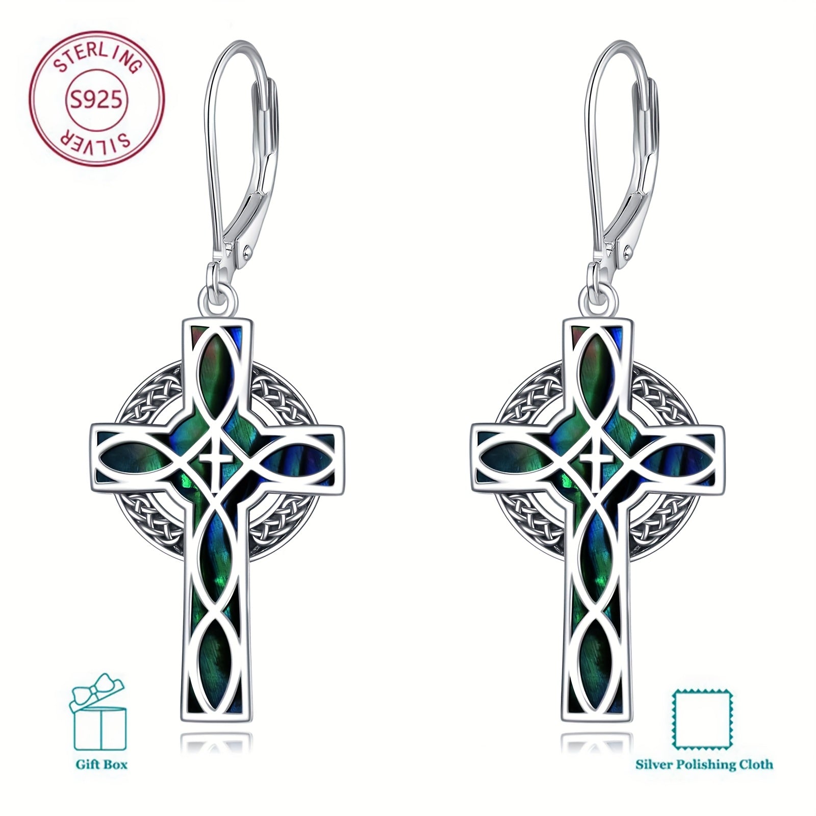 These elegant Celtic Cross earrings are made of sterling silver, perfect for Christians. They feature a dangle drop design with leverback closures. Ideal for both women and men.