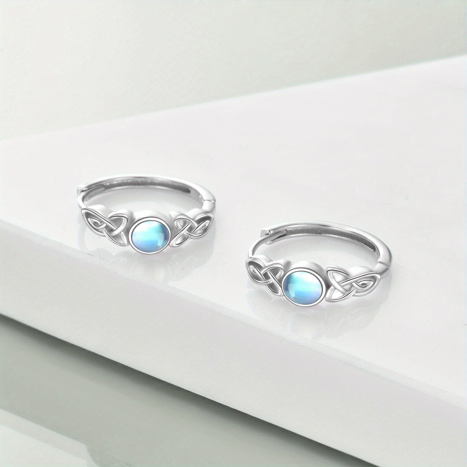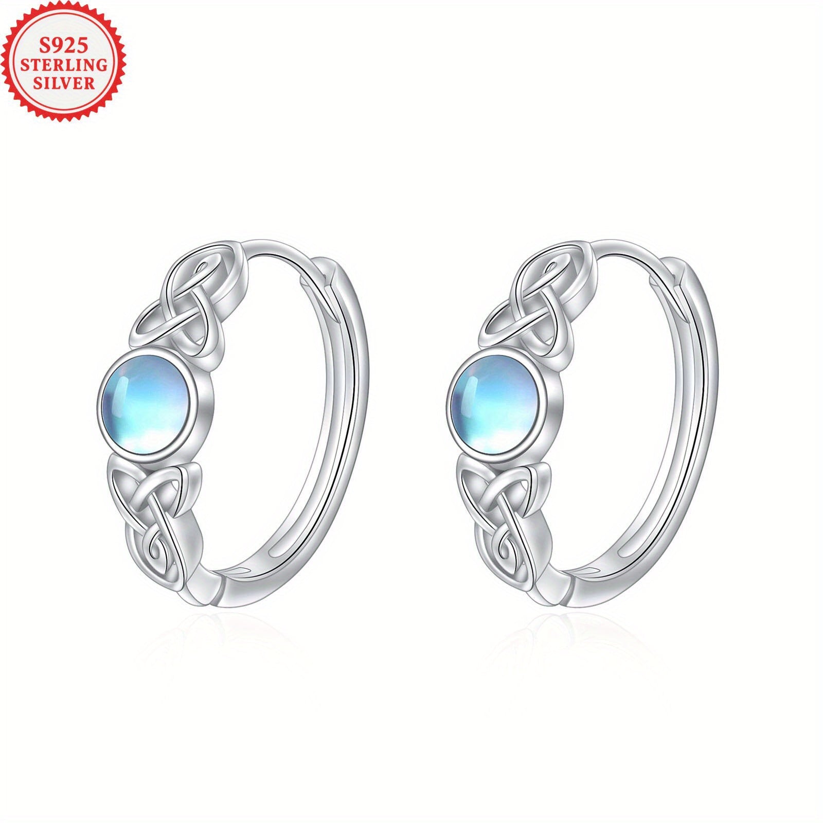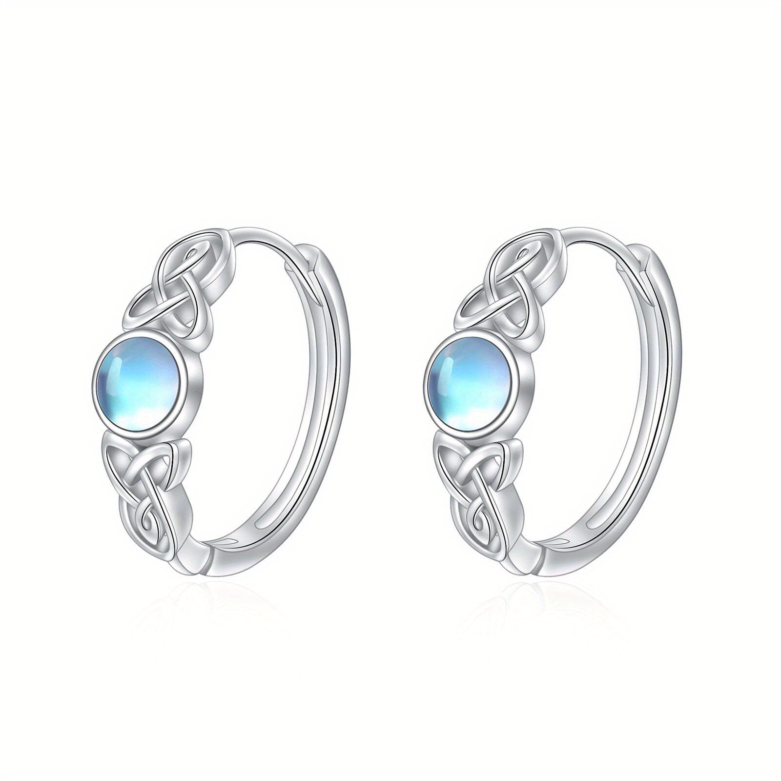 Celtic Moonstone Hoops Earrings Sterling Silver Huggie Jewelry Gift for Women