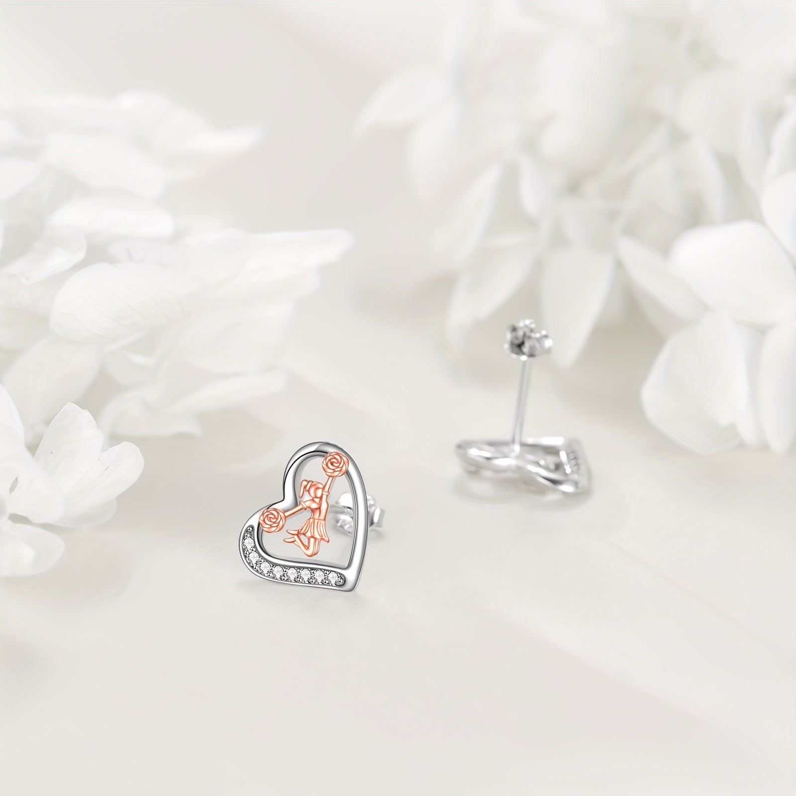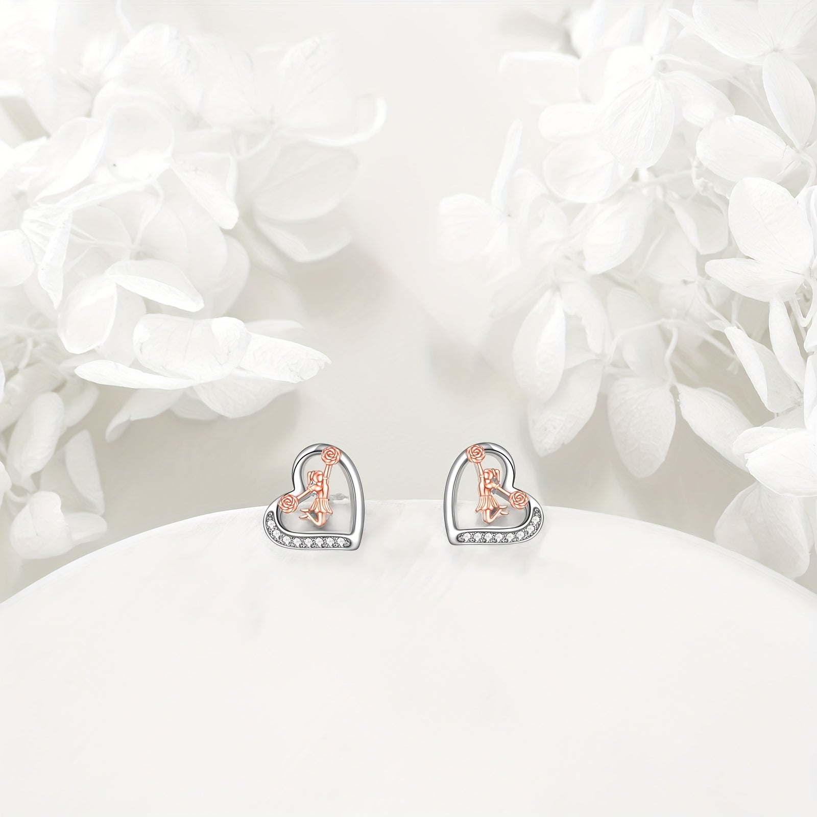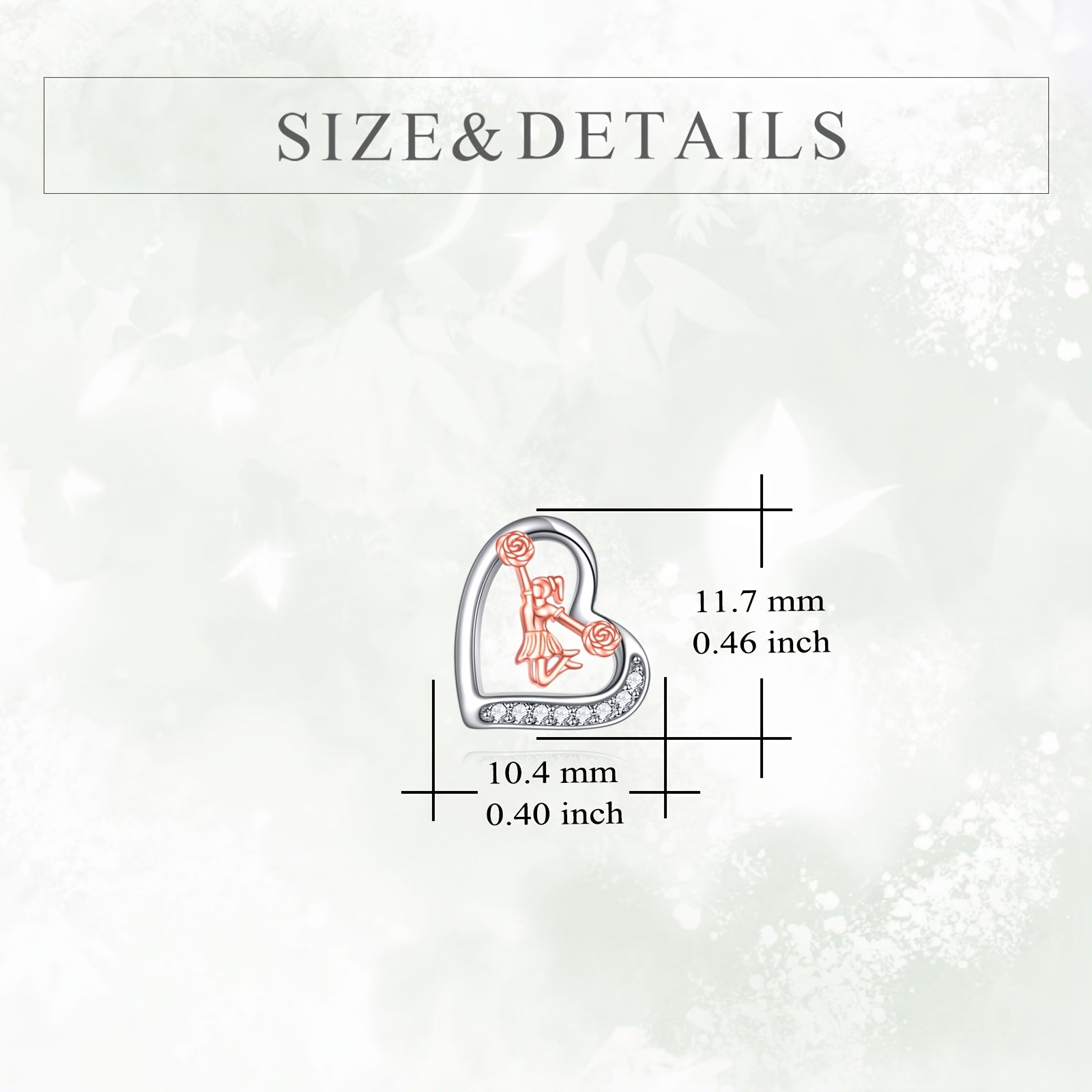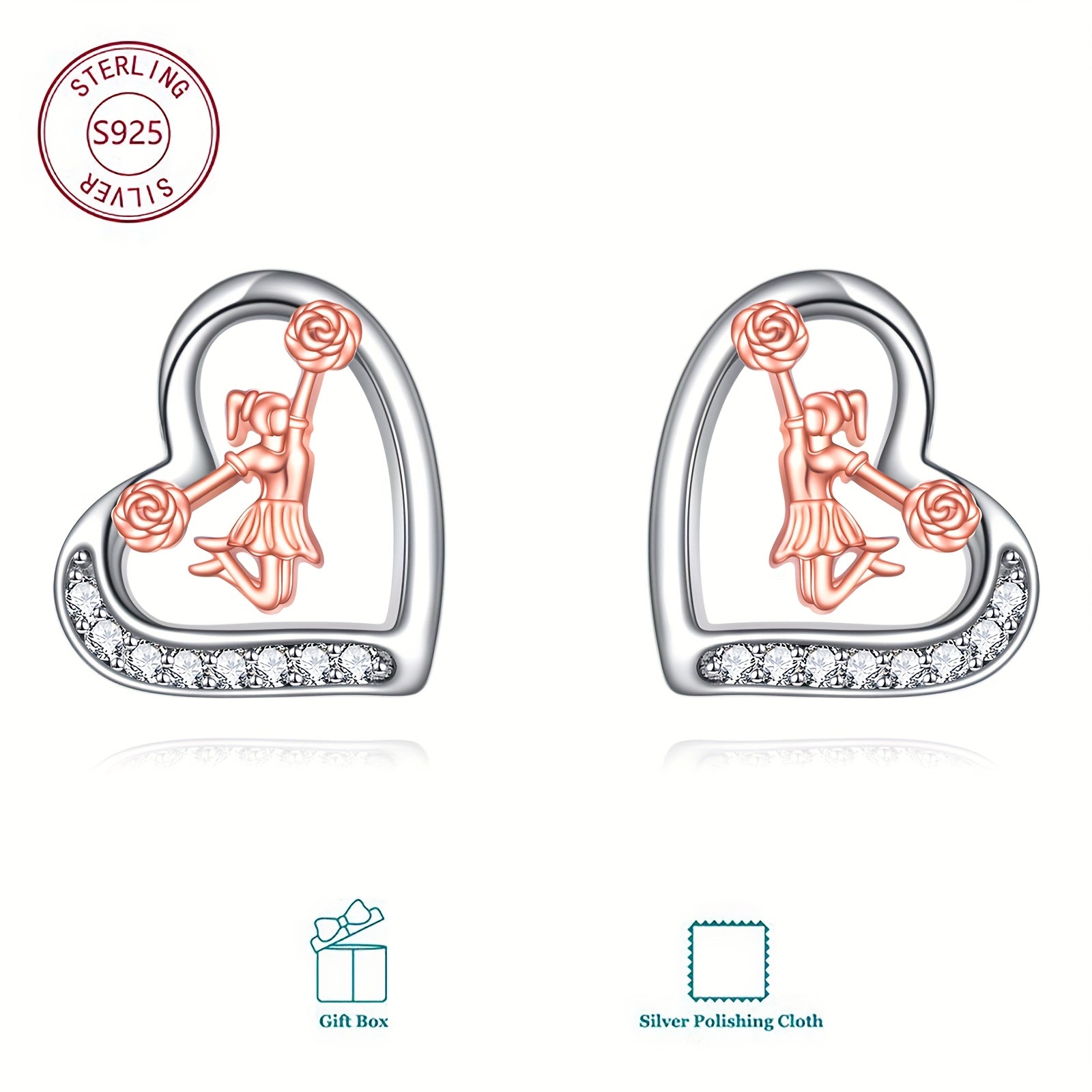 Cheerleading Earrings 925 Sterling Silver Heart Shaped Studs for Women
