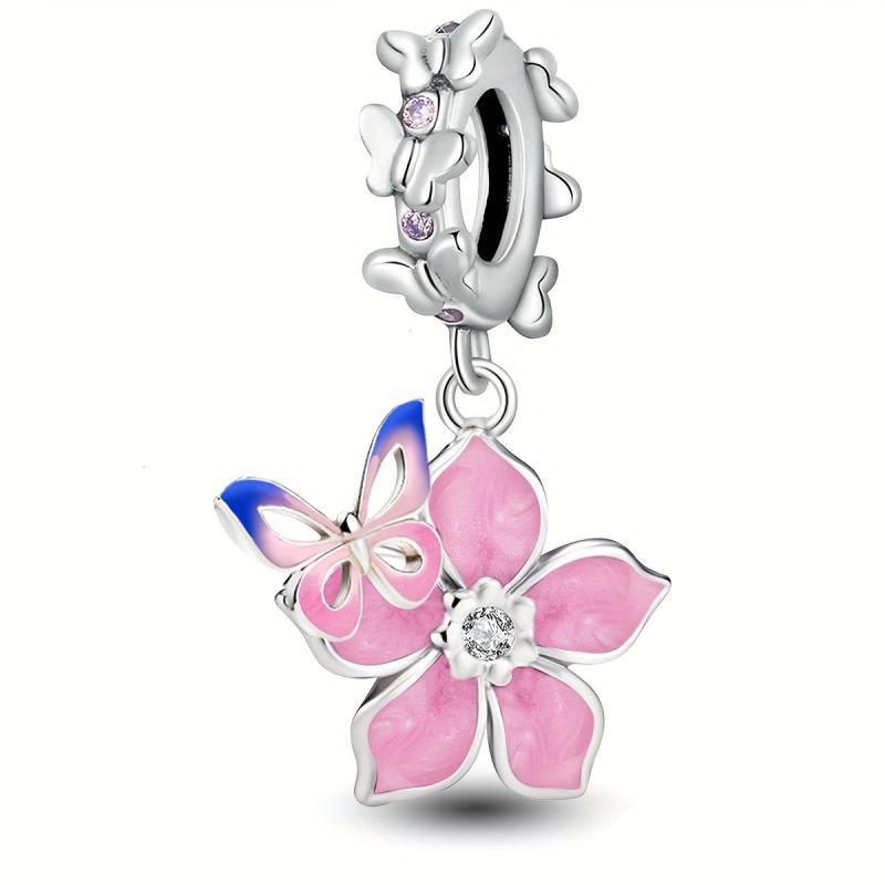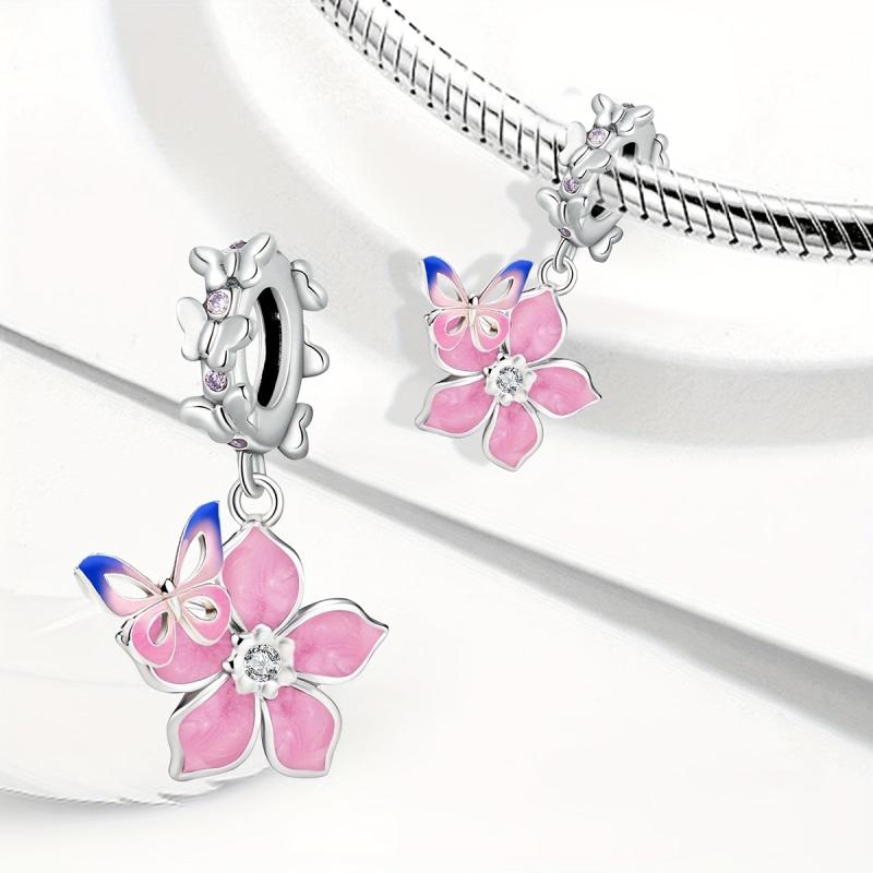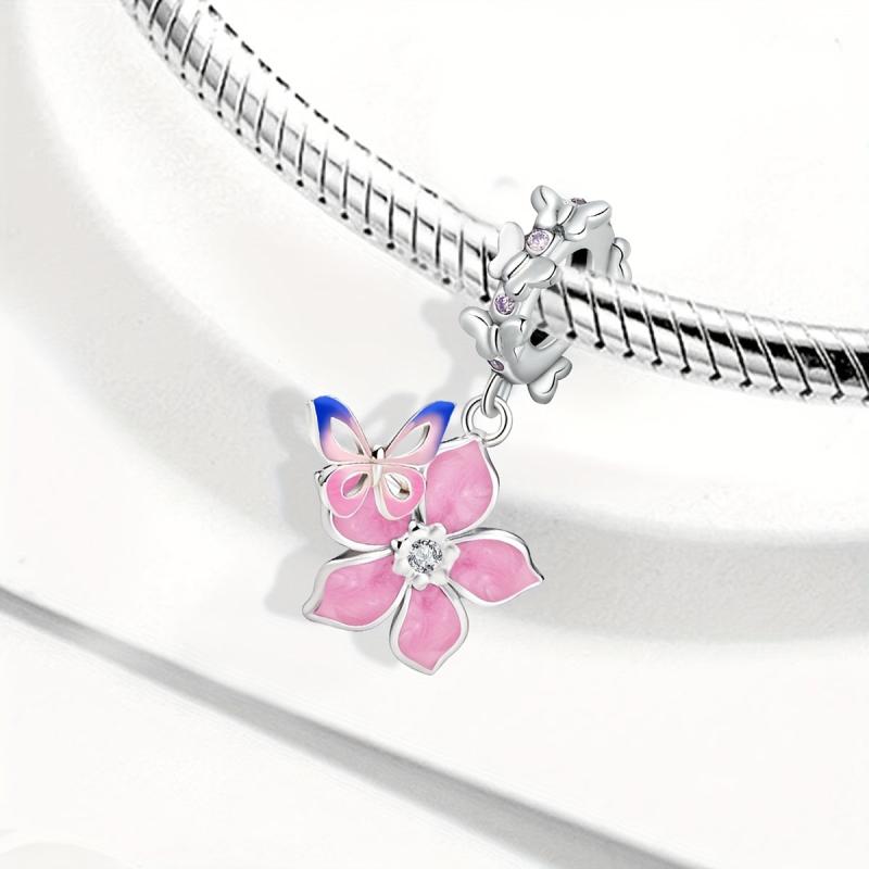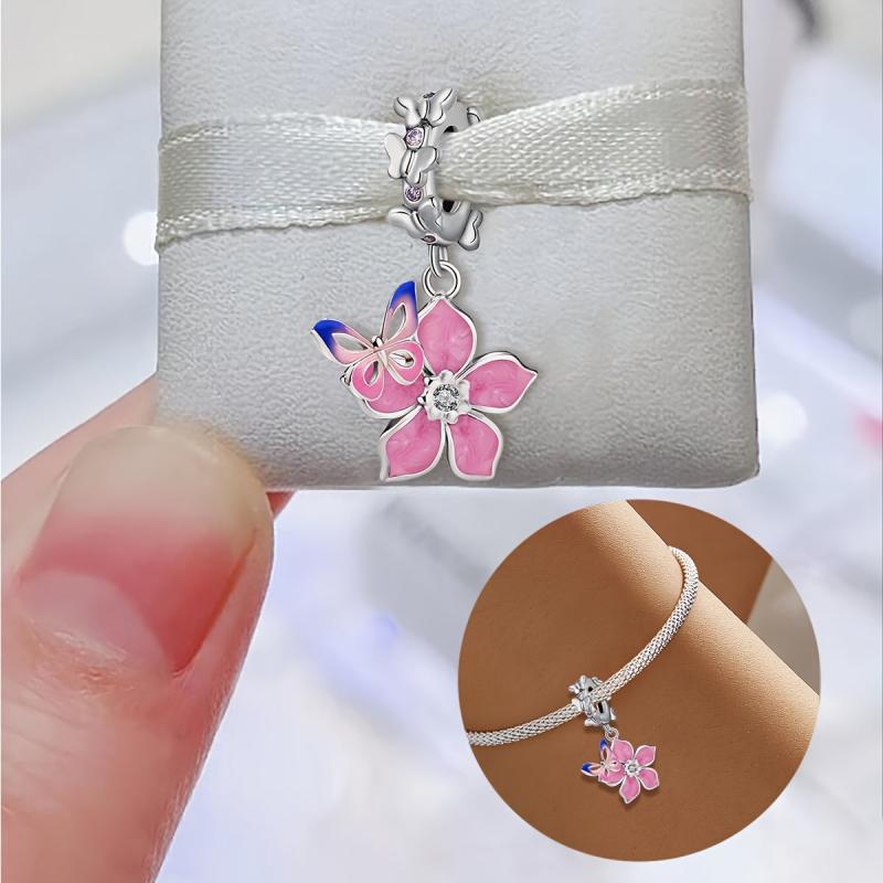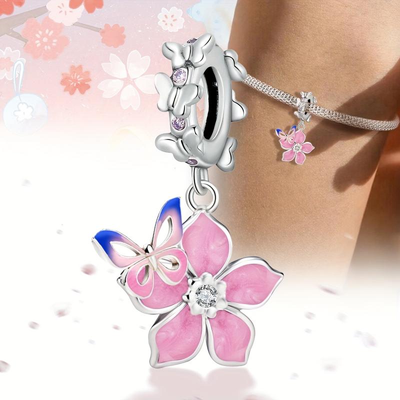 Cherry Blossoms & Butterfly DIY Pendant 925 Silver Bracelet Necklace