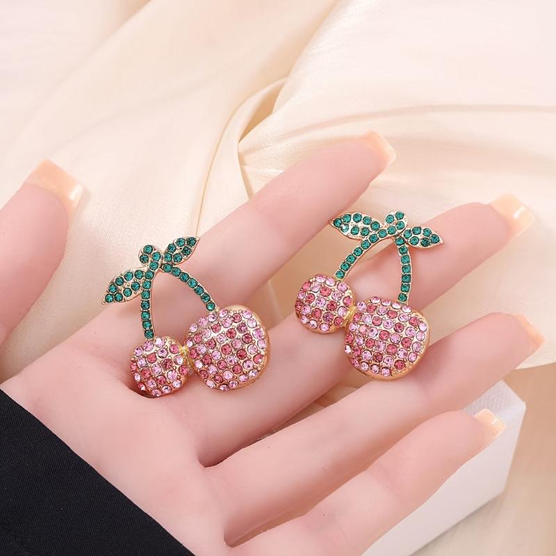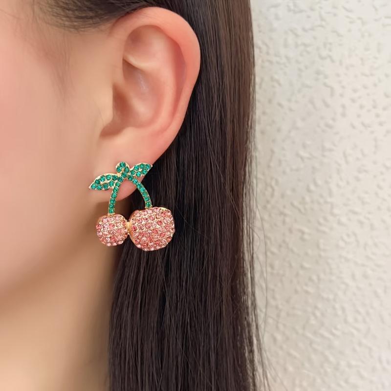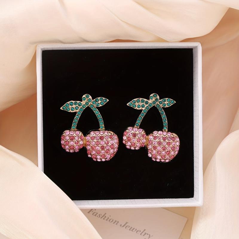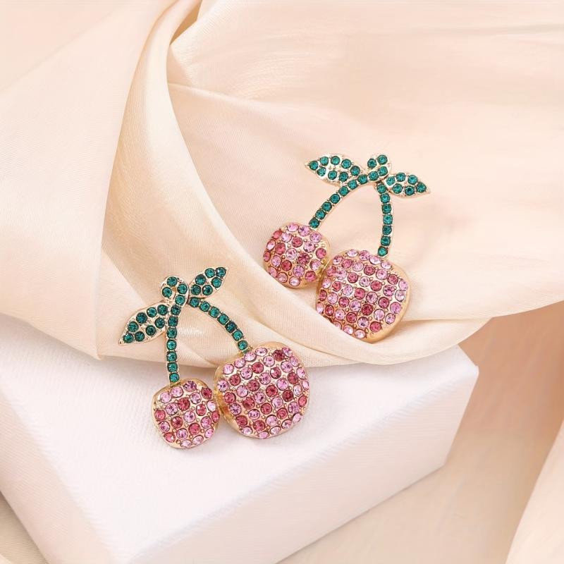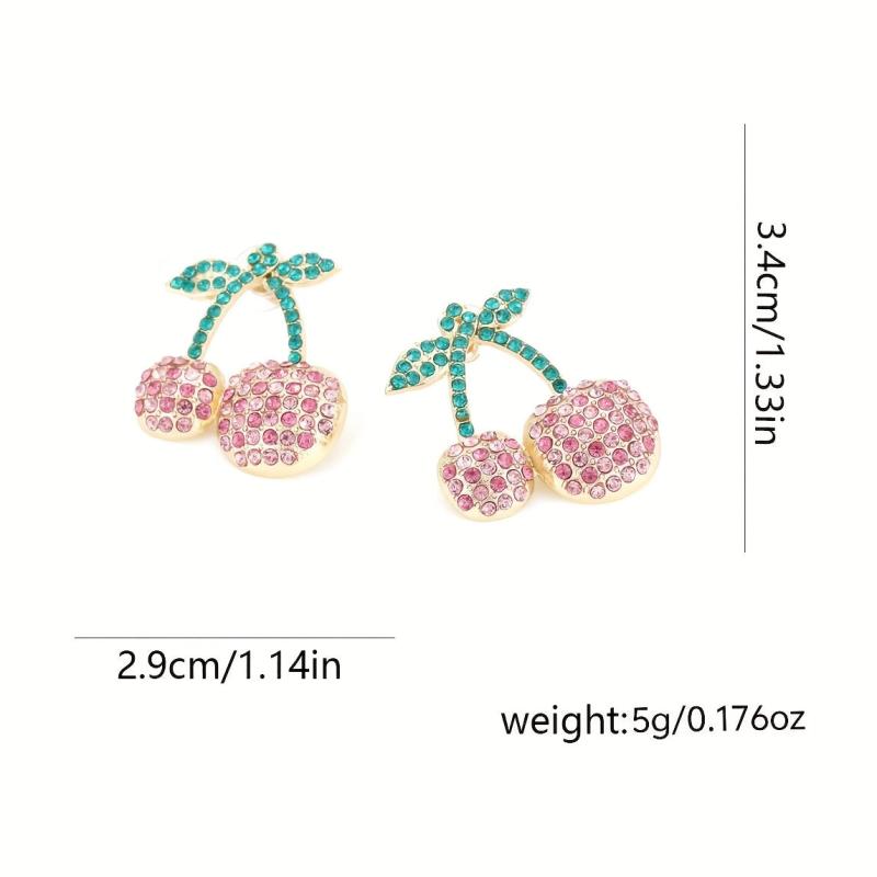 These cherry stud earrings are perfect for all seasons. Made of zinc alloy with rhinestone embellishments, they are a stylish accessory for daily wear or vacation outfits.