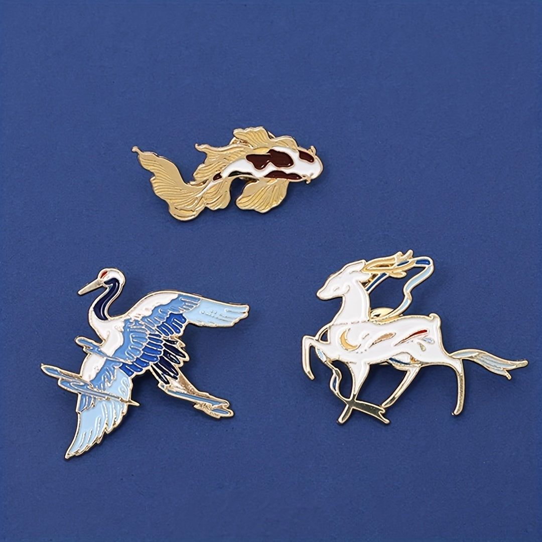 Chinese Style Brooch Crane Fish Horse Lapel Pin Non Slip Buckle Pin