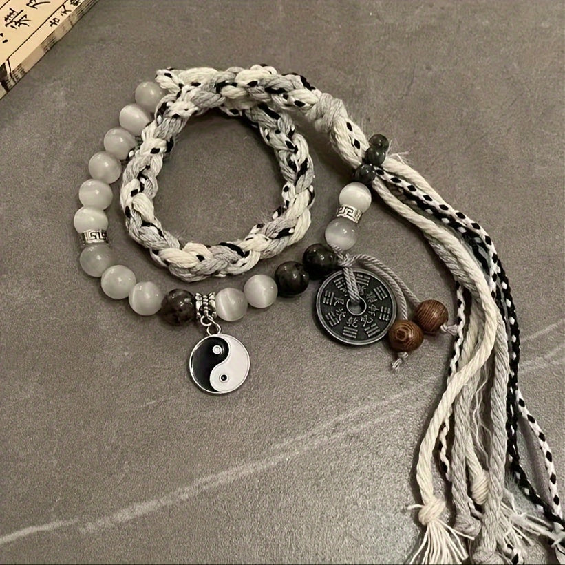 Chinese Style Yin Yang Bracelet Brass Bead & Tassel