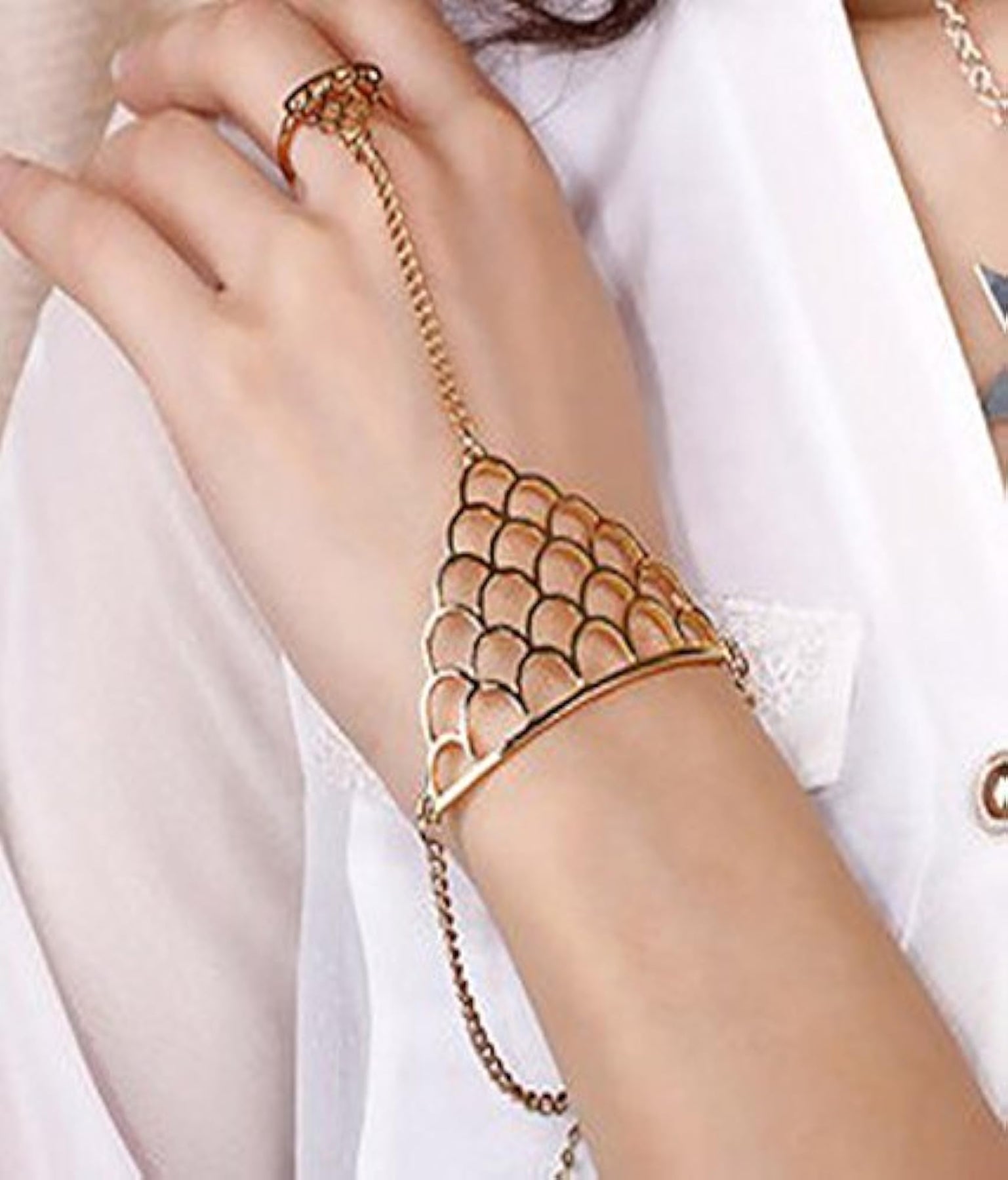 Add a touch of elegance to your look with this stunning metal strand bracelet cum ring from the Cinderella Collection. Perfect for girls and women.