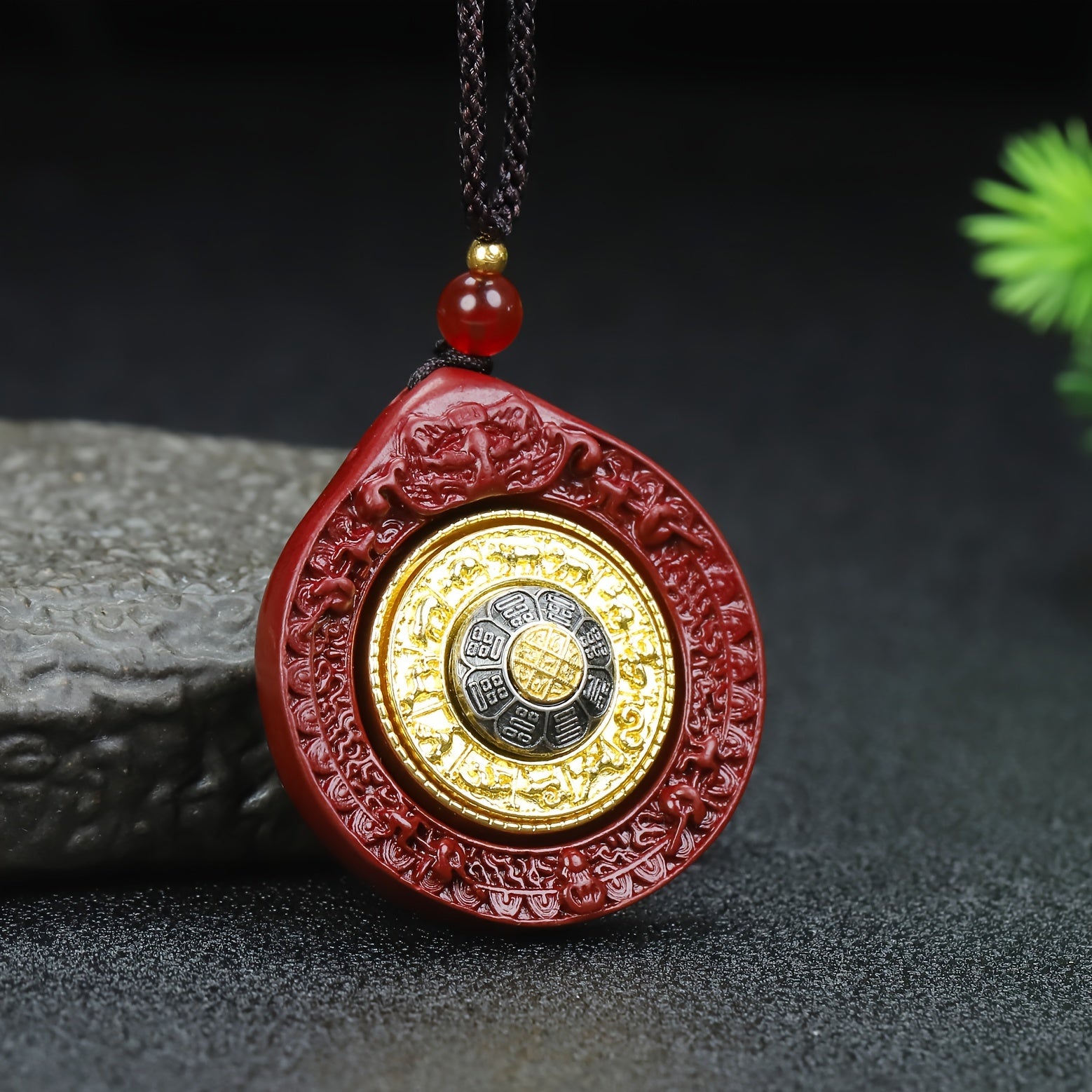 This pendant ornament features high content cinnabar with a unique design of Nine Palaces & Eight Trigrams. It is suitable for both men and women and can be worn as a birth year pendant.