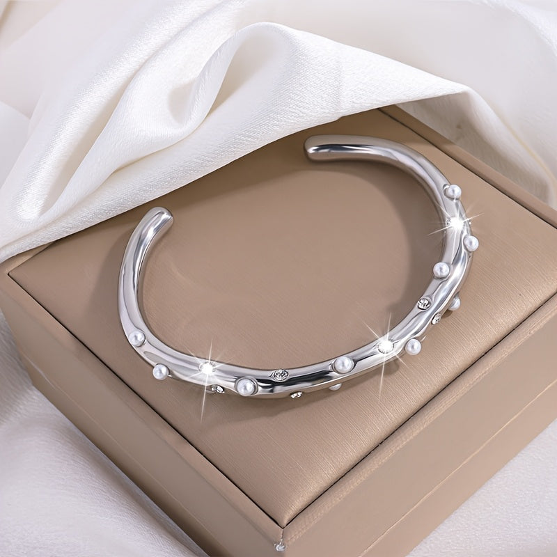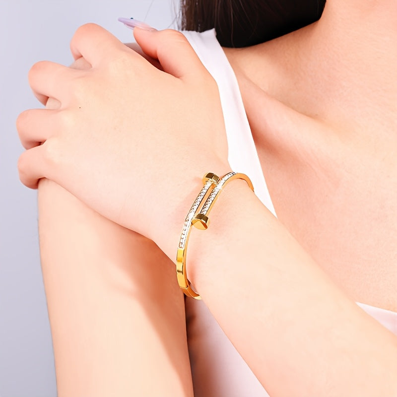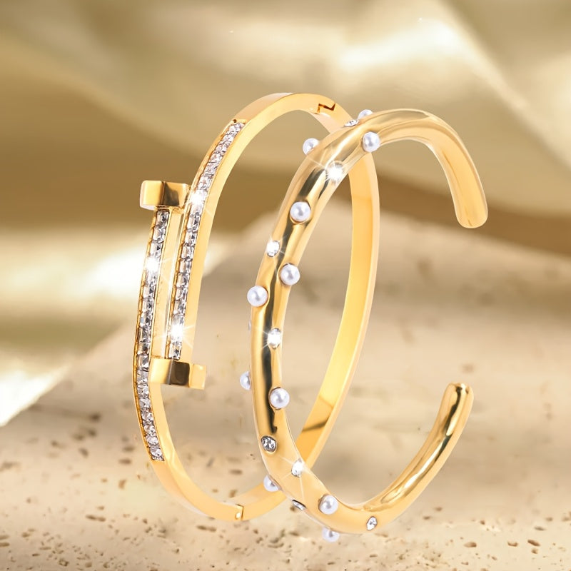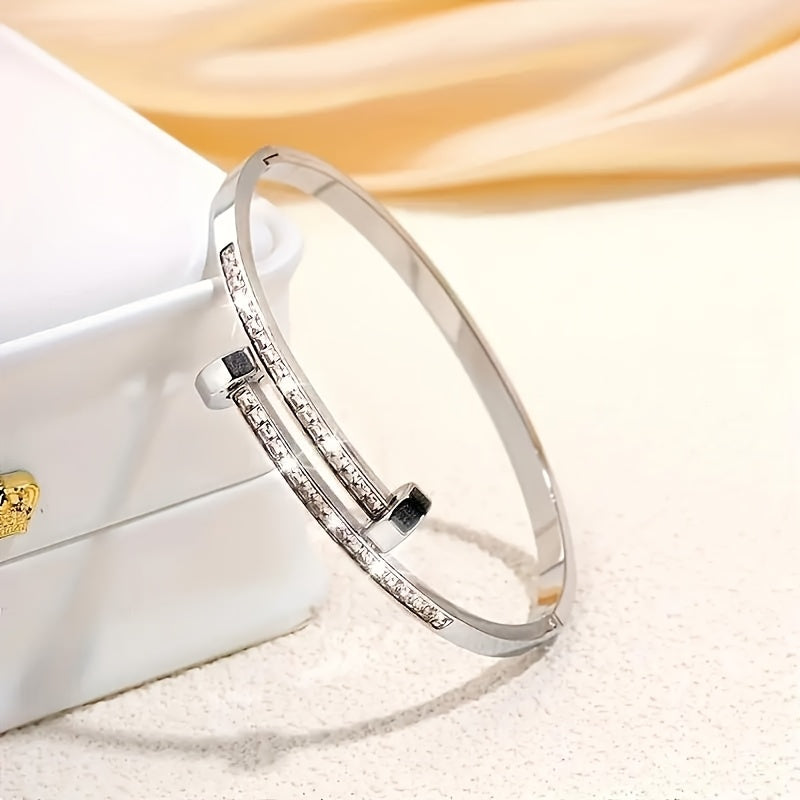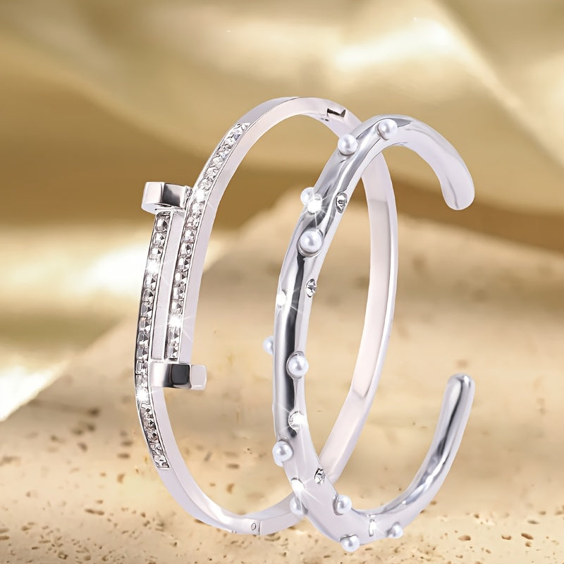 Elegantly designed stainless steel bracelets with synthetic cubic zirconia for a touch of sophistication.
