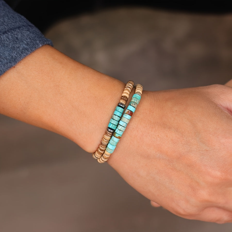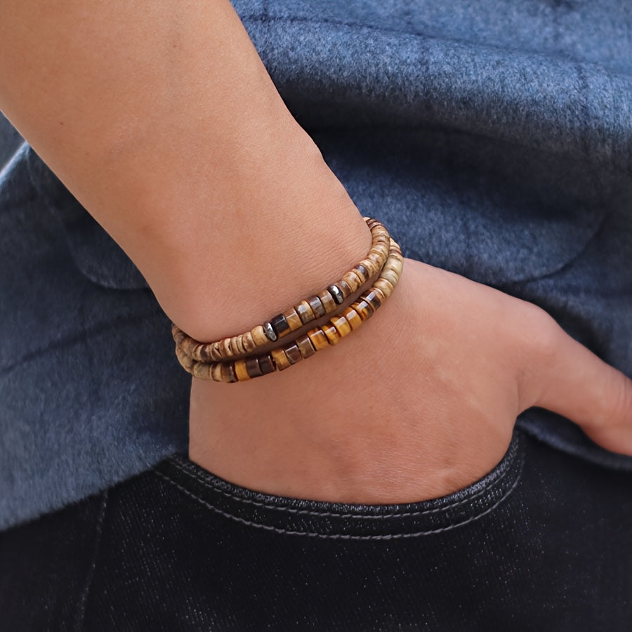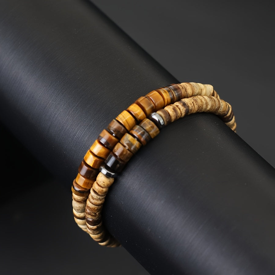 Coconut Husk Beads Bracelet Set Emperor Stone Strand Braslet