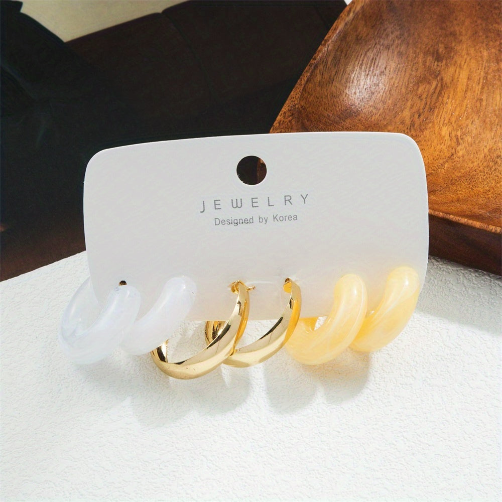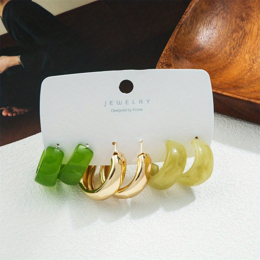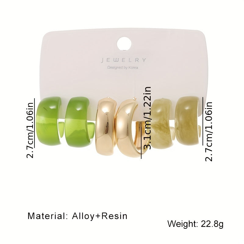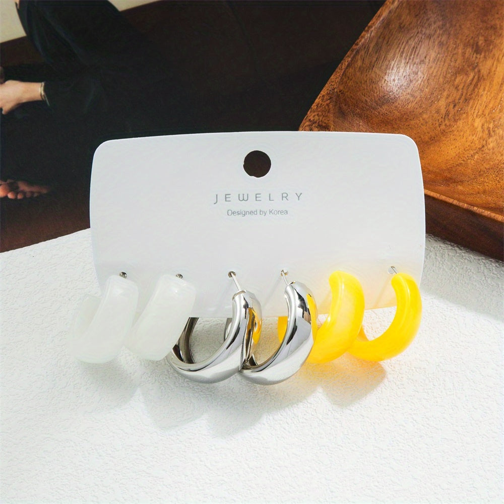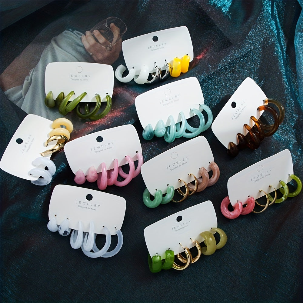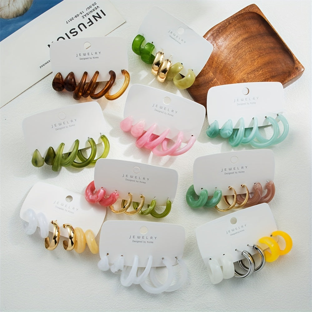 Colorful C Shape Hoop Earrings Set Resin Jewelry
