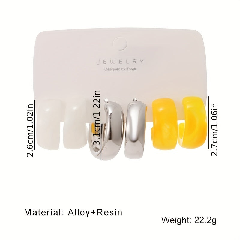 Add a pop of color with these minimalist style hoop earrings made of resin. Perfect for daily wear and accessorizing your look.
