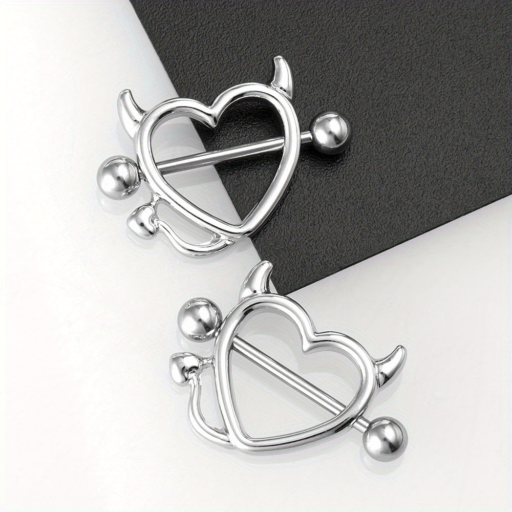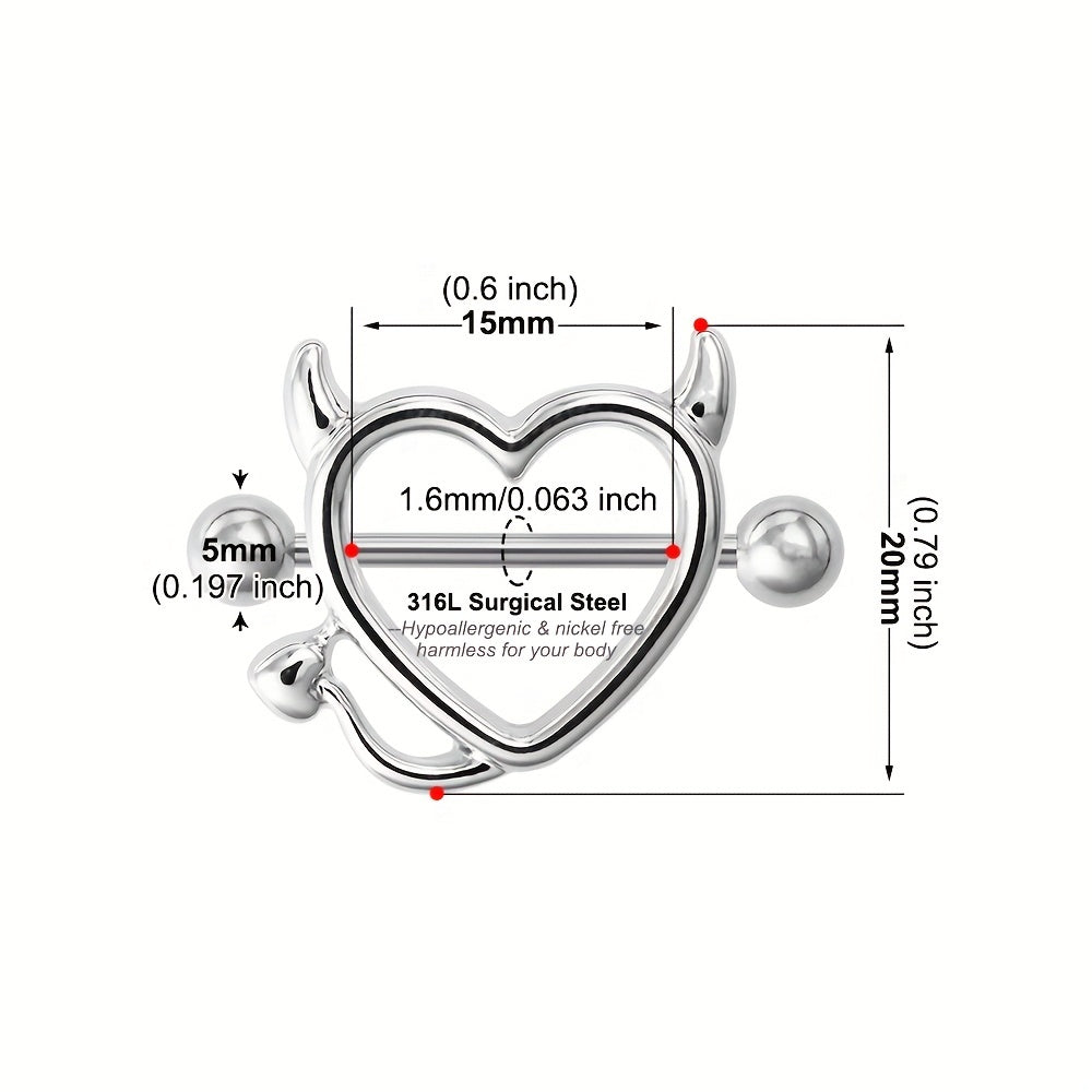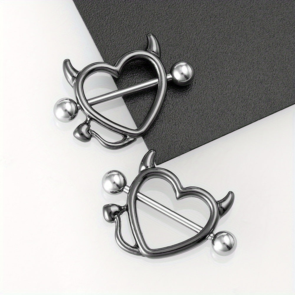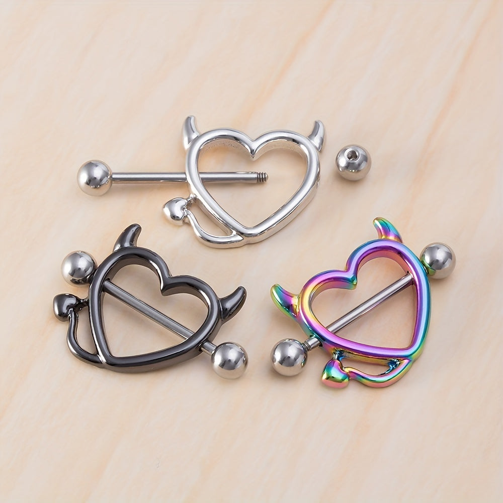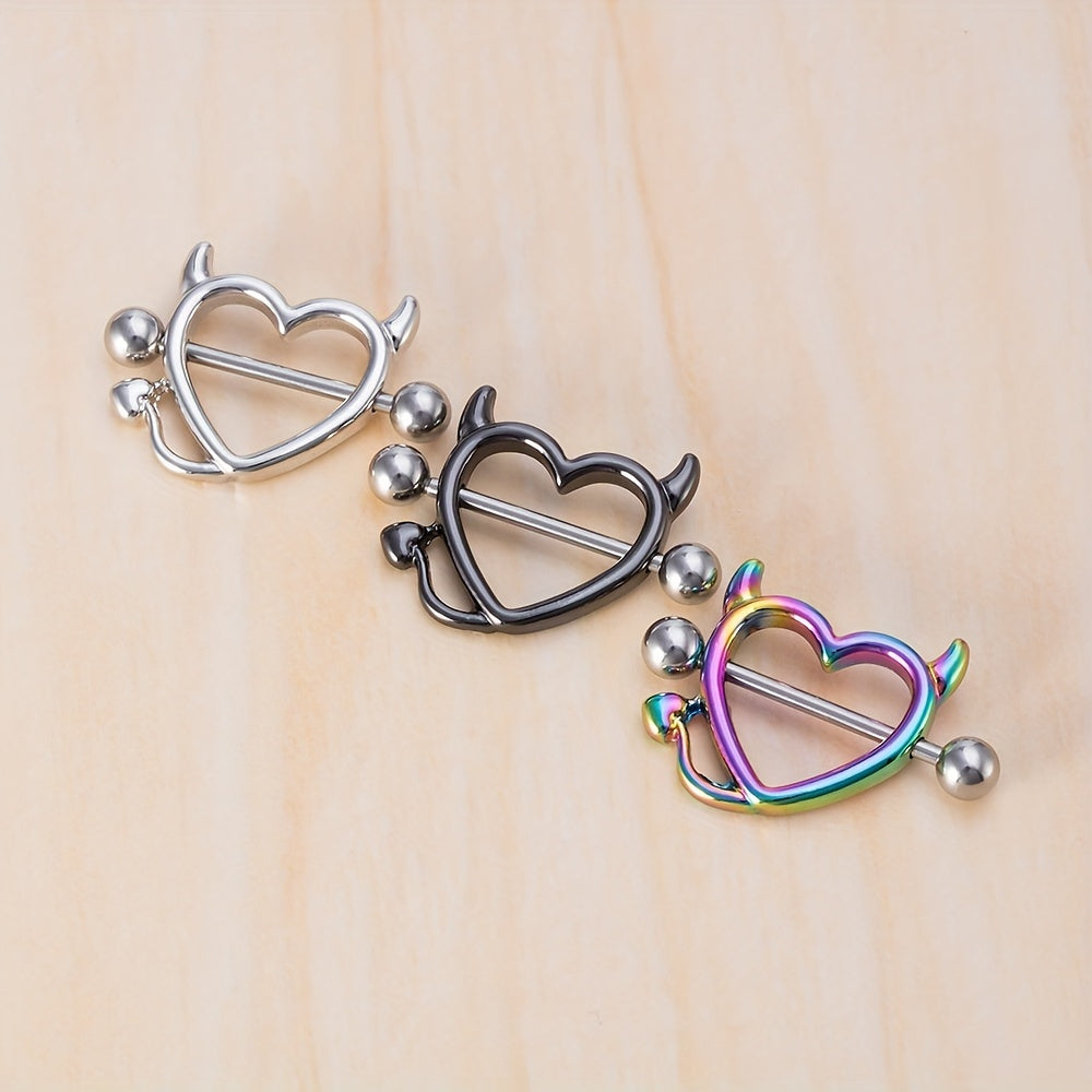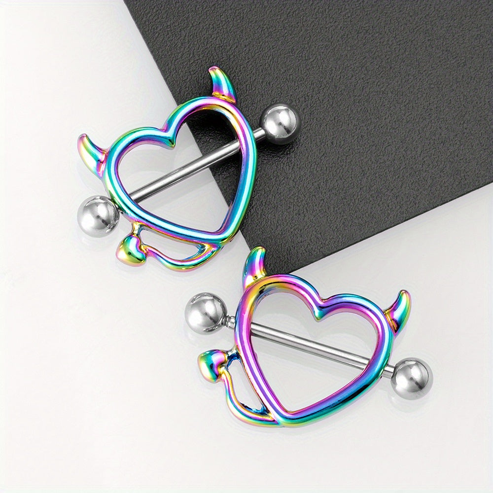 This set includes a pair of devil heart nipple rings designed for colorful body piercing. Made with high-quality materials for comfort and style.