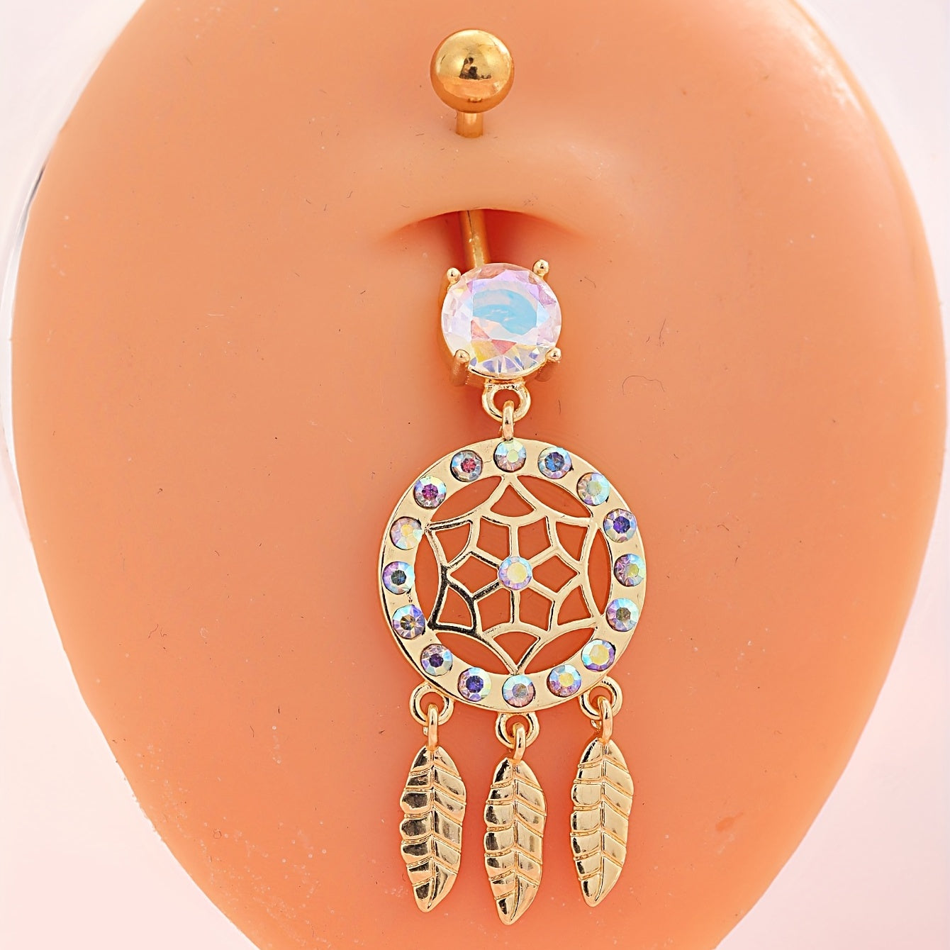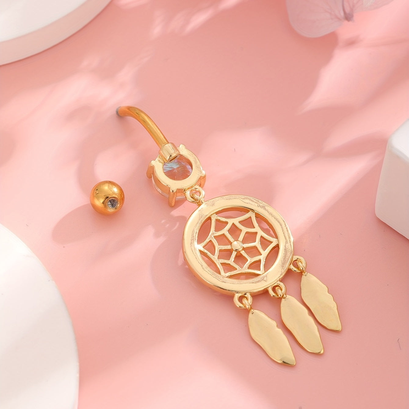 Add a pop of color and style with this unique dream catcher belly button ring featuring dazzling zircon stones. A perfect accessory to show off your personality and sense of fashion.