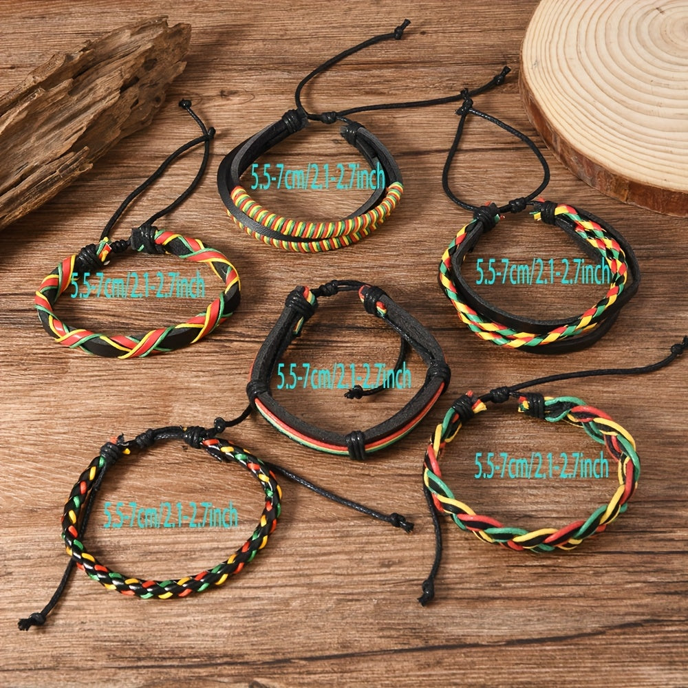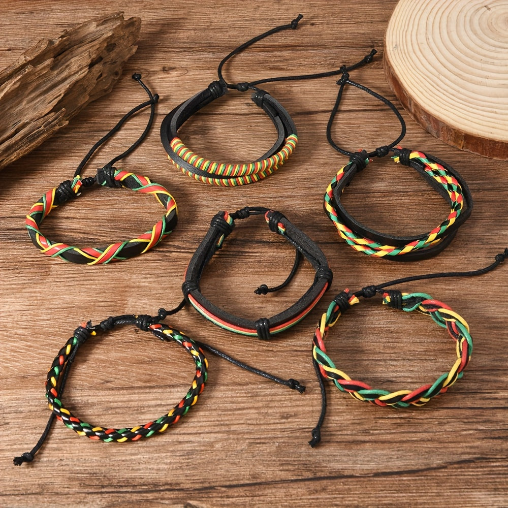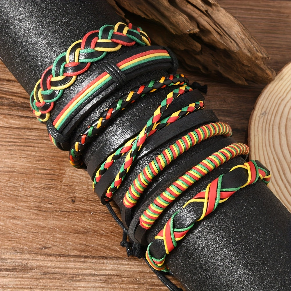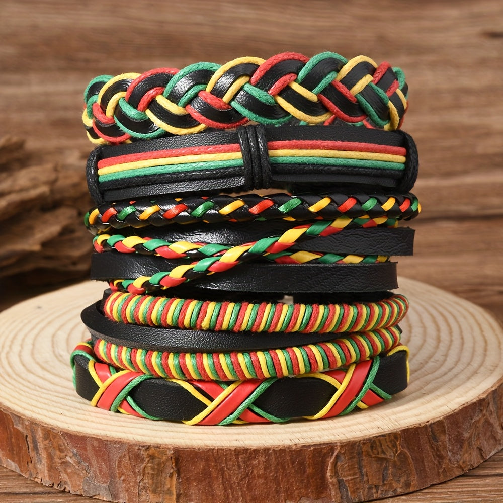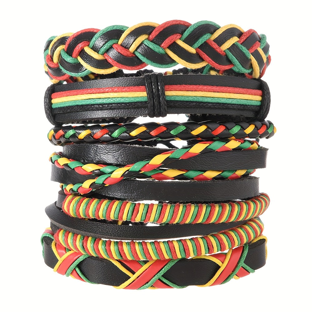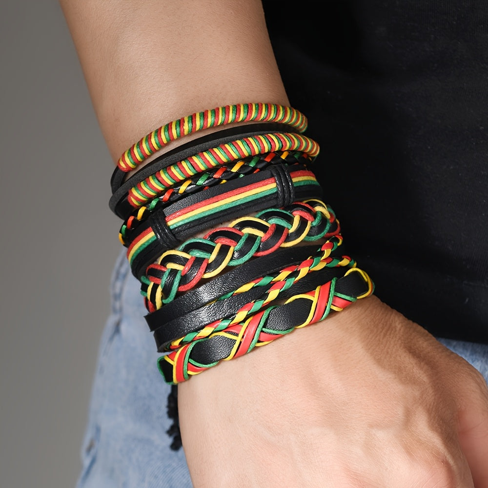 Surprise your boyfriend with this vibrant set of three PU braided bracelets in red, yellow, and green. Perfect for outdoor wear and DIY combinations.