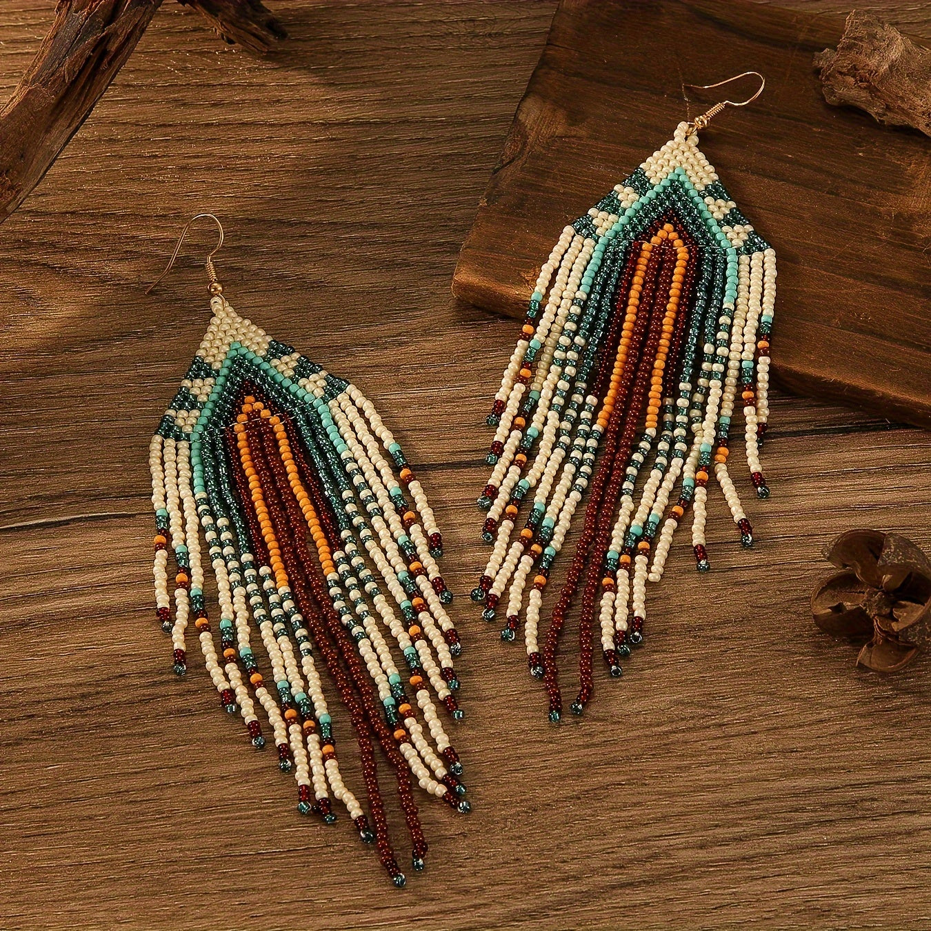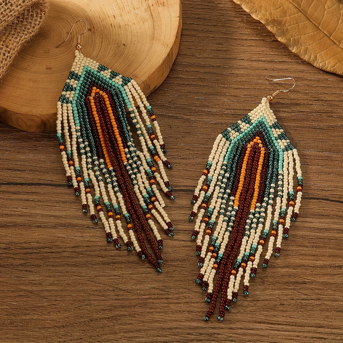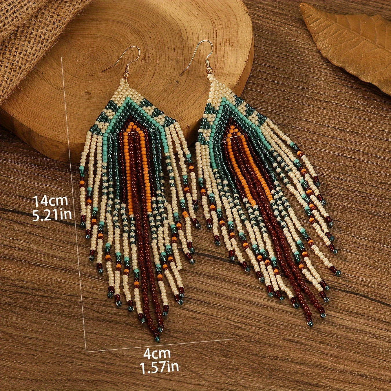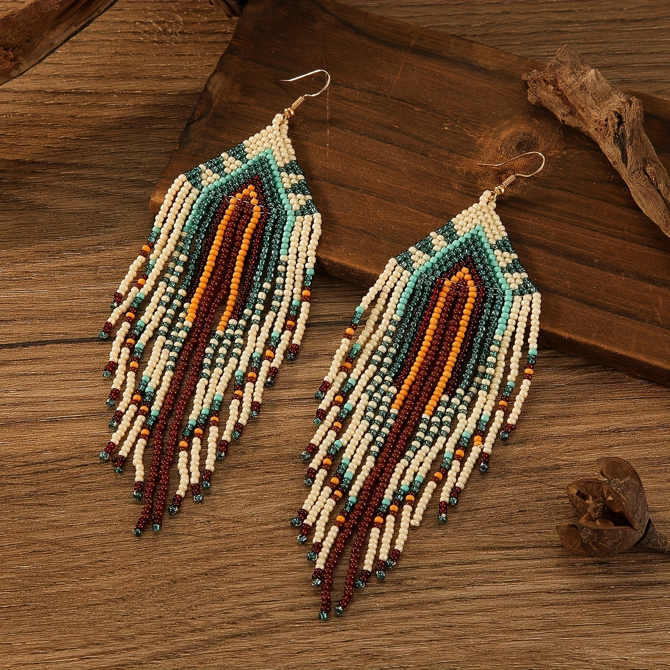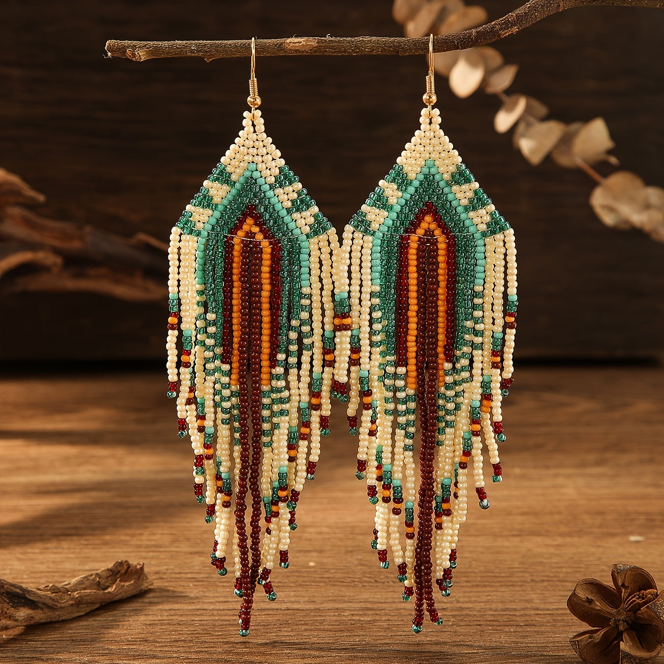 Colorful Rhombus Beads Tassel Earrings Bohemian Vacation Style