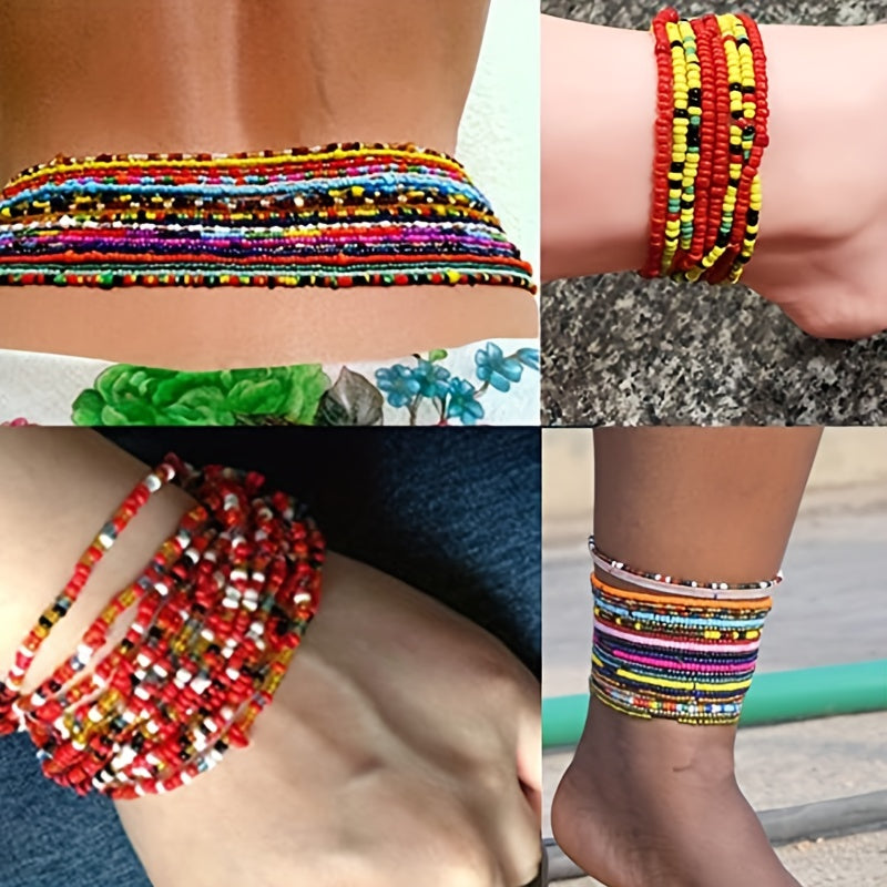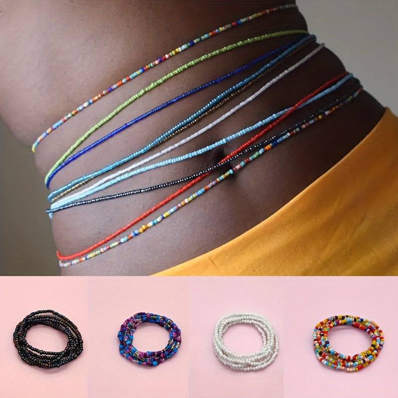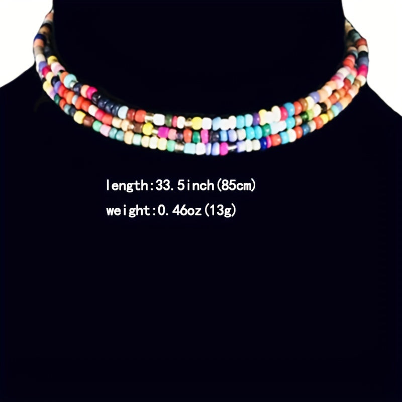 Add a pop of color to your summer look with this vibrant rice beads waist chain. Perfect for pairing with bikinis and summer outfits.