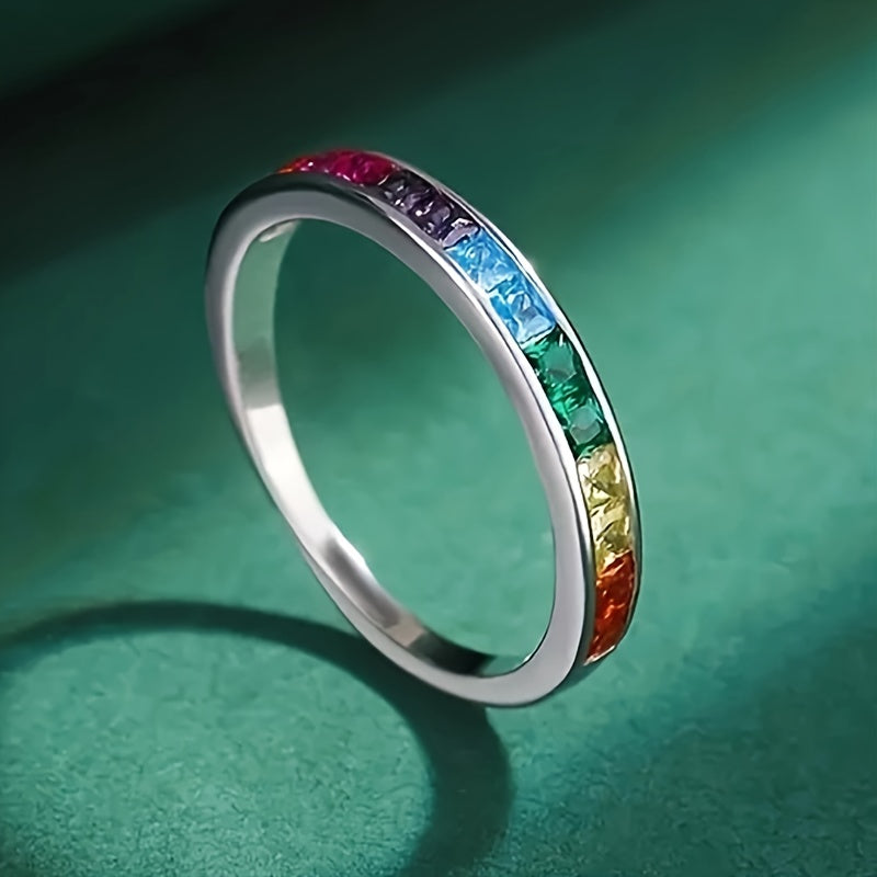 This colorful square synthetic gemstone ring features a unique mosaic design that is perfect for women. It makes a great gift for parties or daily casual accessories.