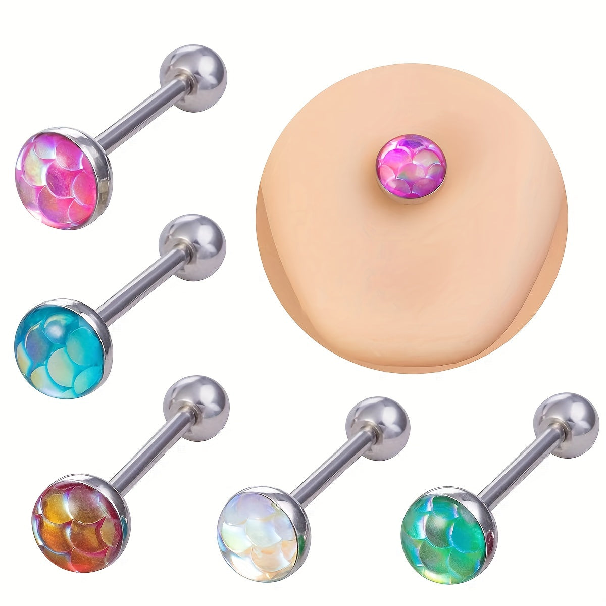 Colorful Stainless Steel Fish Scale Tongue Nail Fantasy Body Jewelry