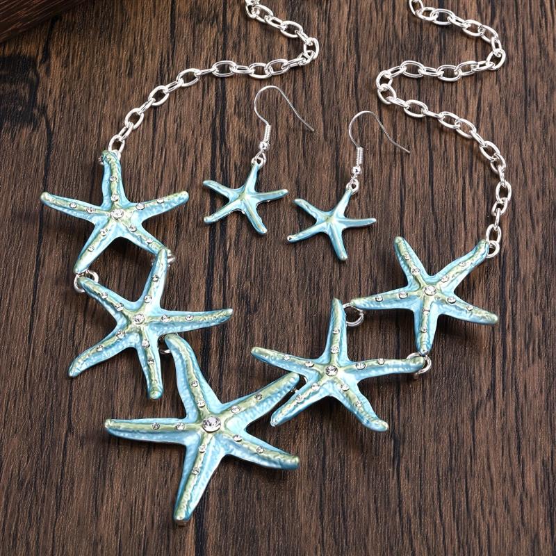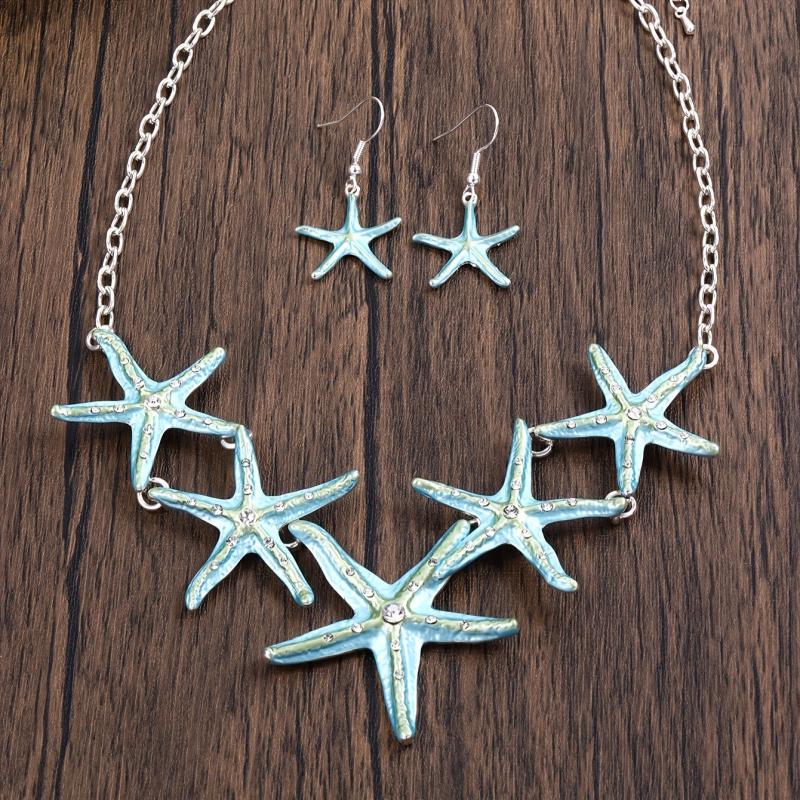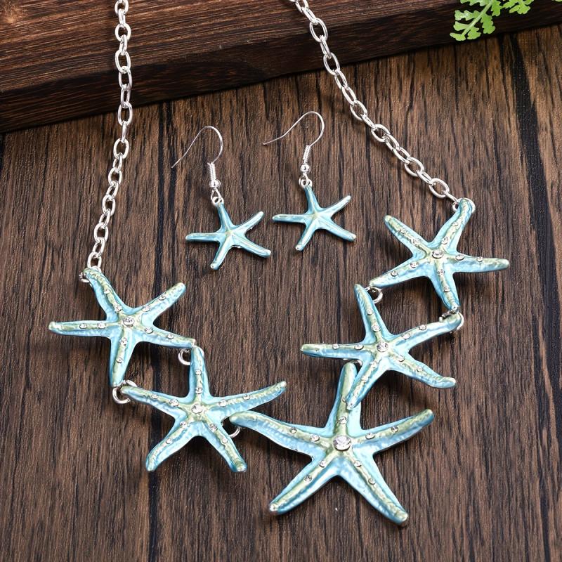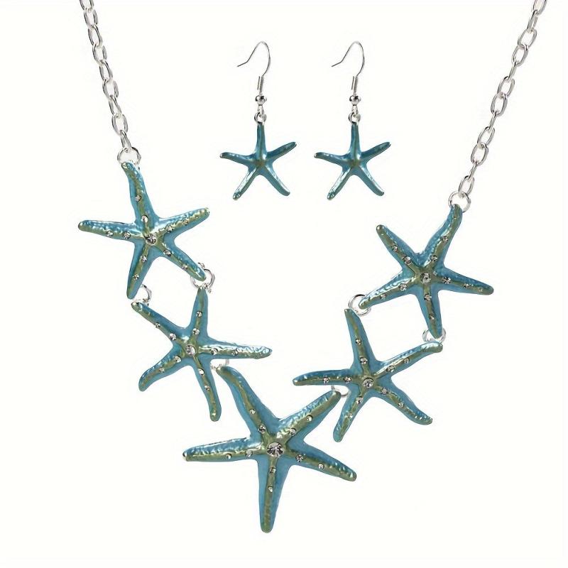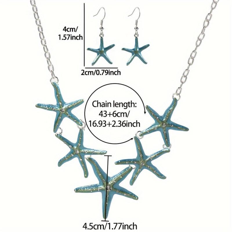 This jewelry set includes a necklace and earrings with a colorful painting starfish design. It is small, fresh, and sweet, perfect for adding a touch of charm to any outfit.