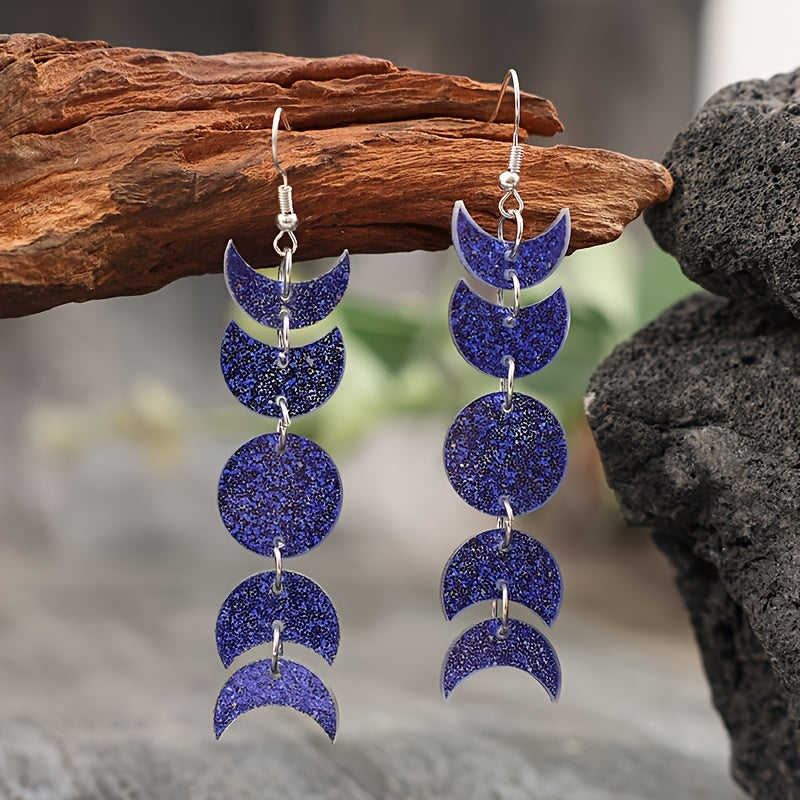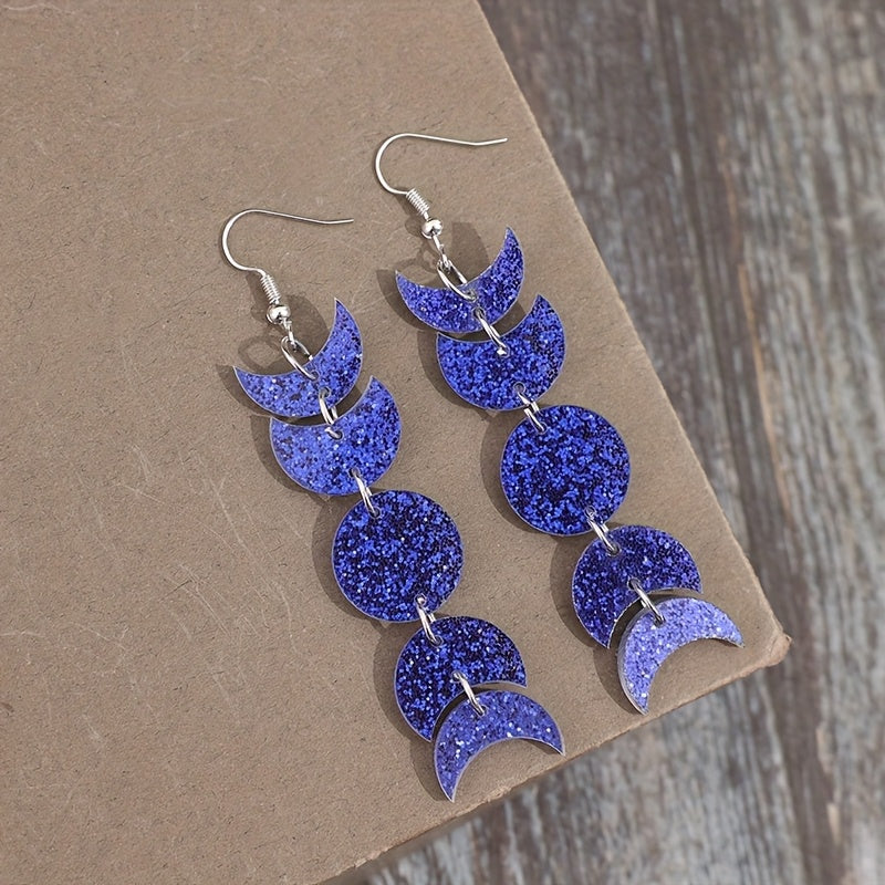 Crescent Moon Circle Sequin Acrylic Long Earrings