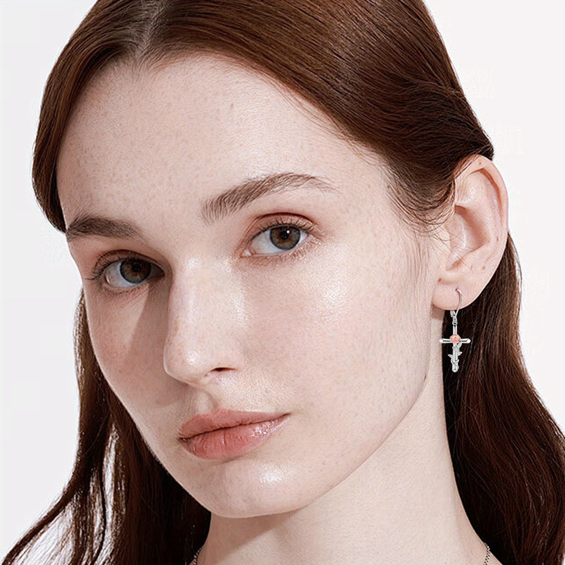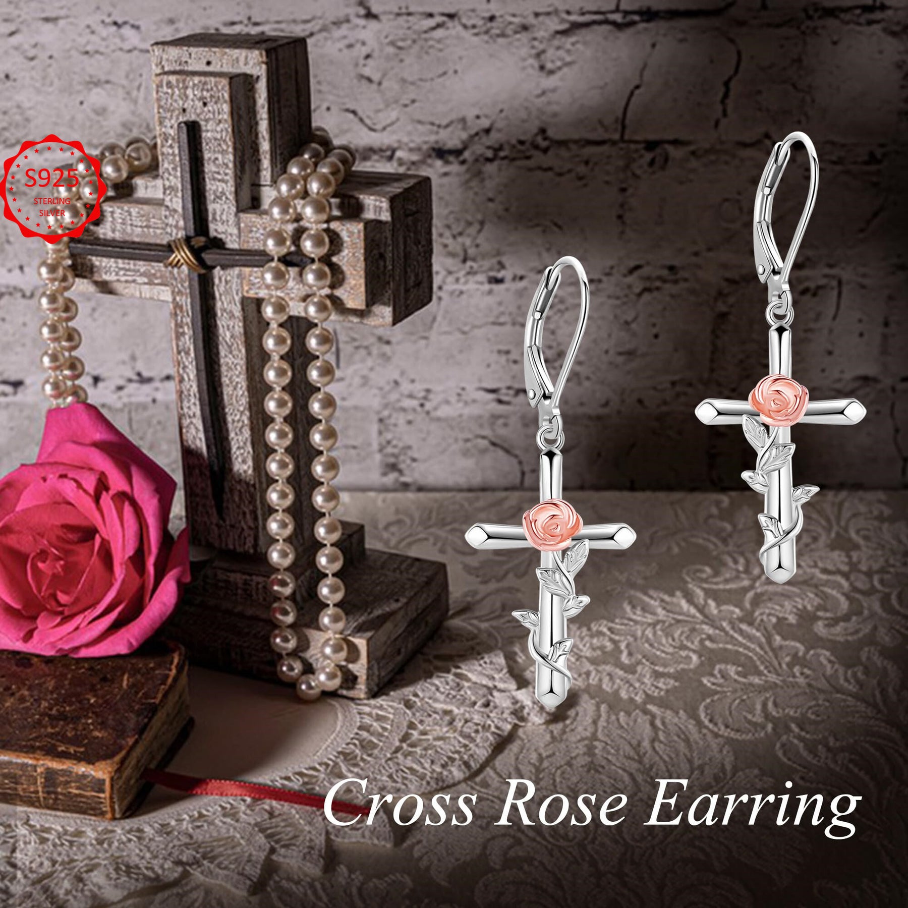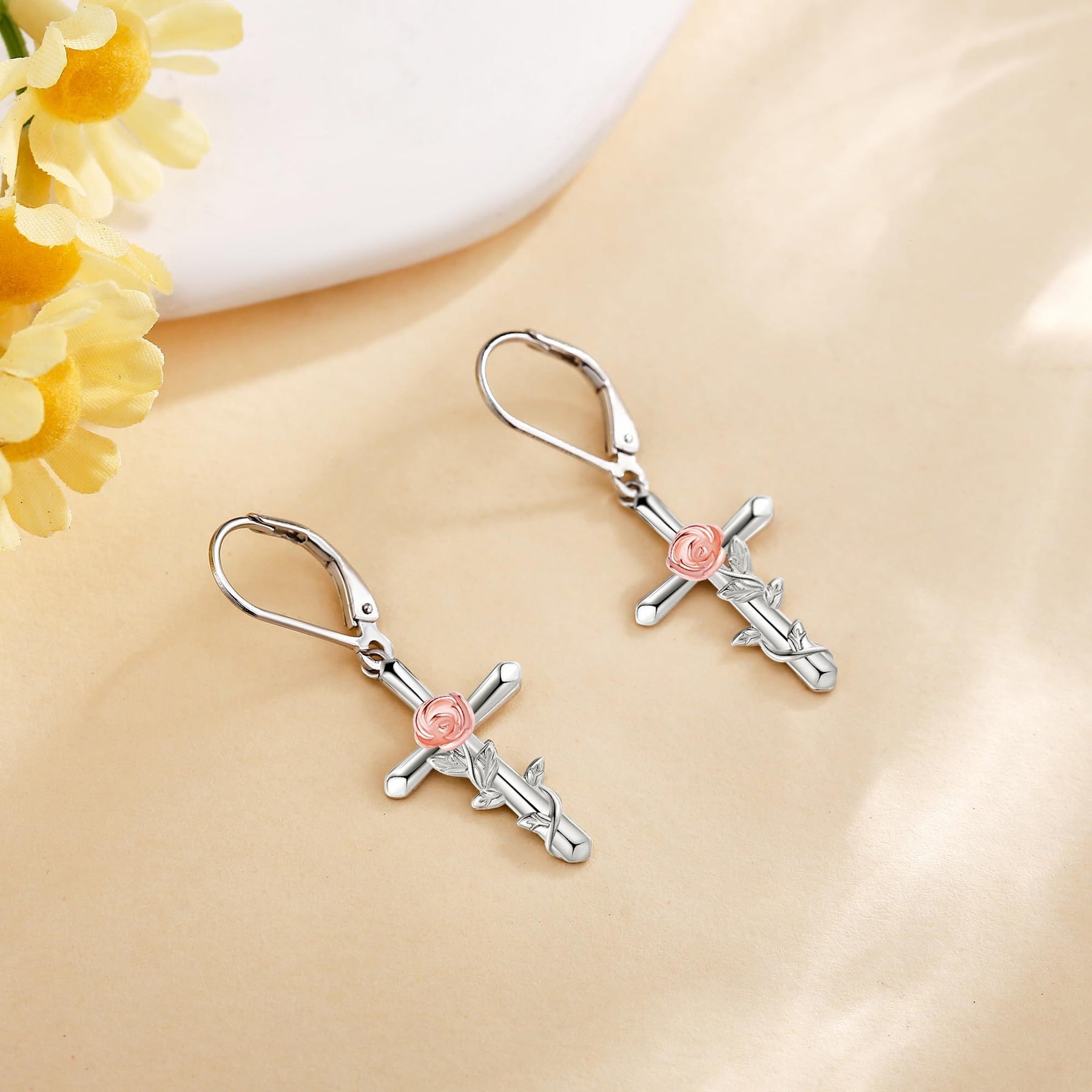 These beautiful sterling silver earrings feature a cross design with a delicate rose flower accent. Perfect for everyday wear or special occasions.