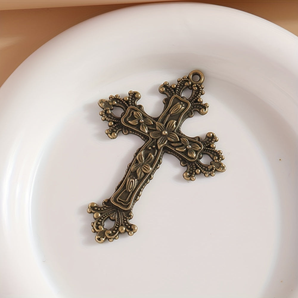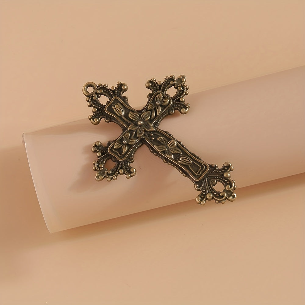 Elegant and stylish jewelry accessory featuring a cross-shaped pendant with a crown flower design.