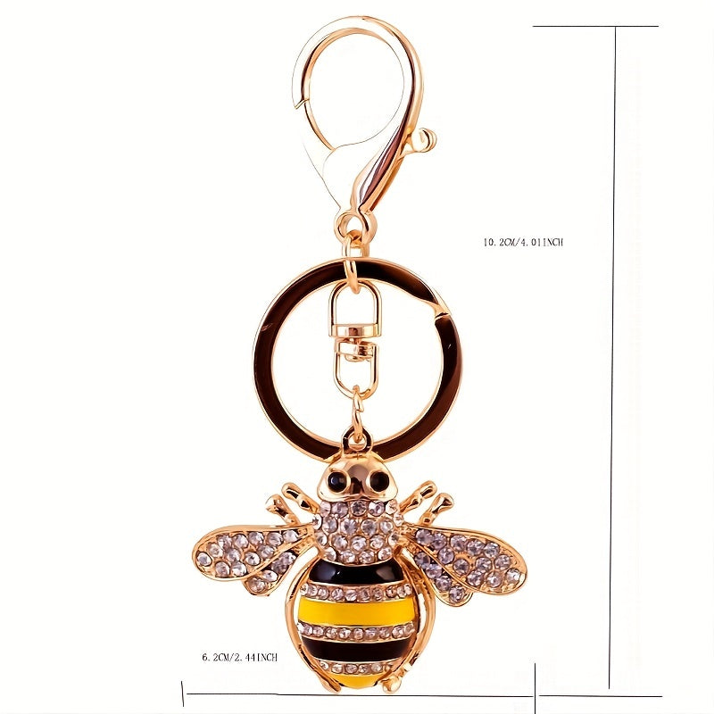 This adorable key chain features a bee design with sparkling crystals and artificial diamonds. Perfect for adding a touch of charm to your car keys or bag.