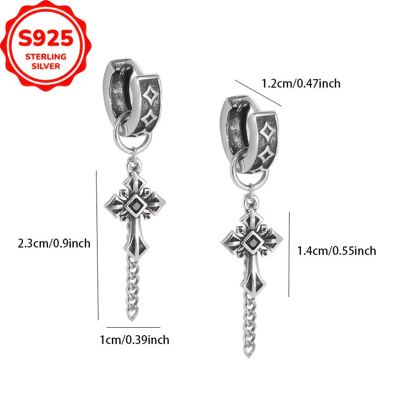 These low-allergy earrings feature a dark retro design with tassel and cross elements. They are versatile and suitable for all occasions, making them a perfect gift option.