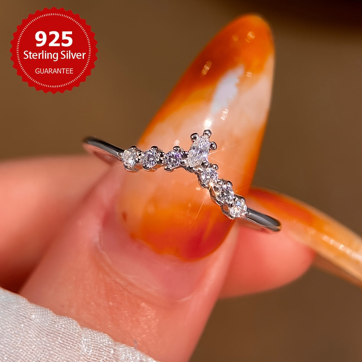 This elegant V shape ring is made of high-quality s925 sterling silver. It is a perfect wedding band or a fine piece of ladies jewelry. This ring makes a great gift for any occasion.