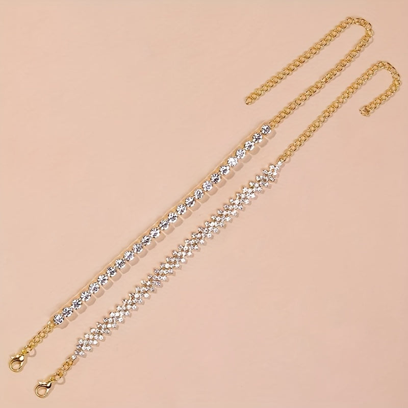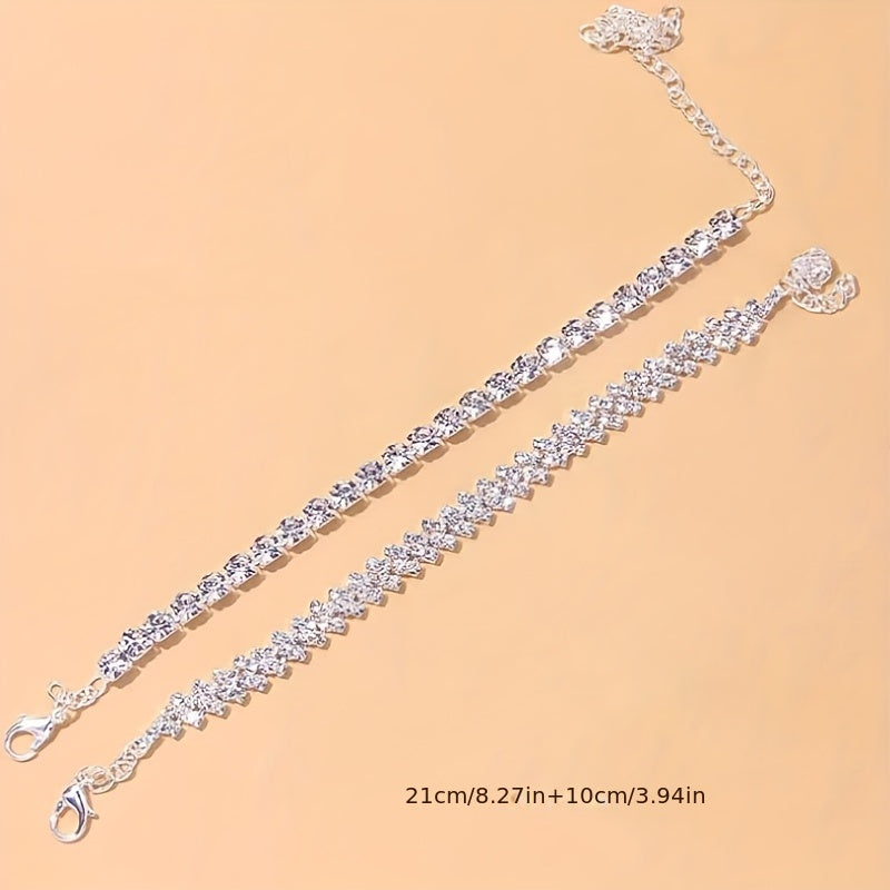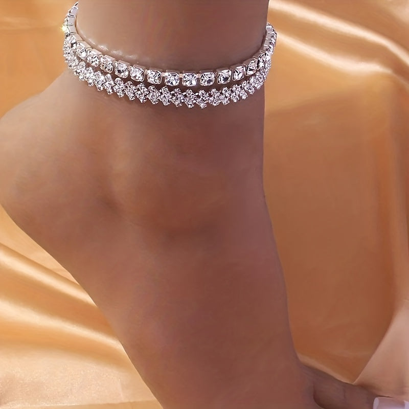 Enhance your beach look with this stunning double layer rhinestone anklet. Perfect for adding a touch of sparkle to your ankles!